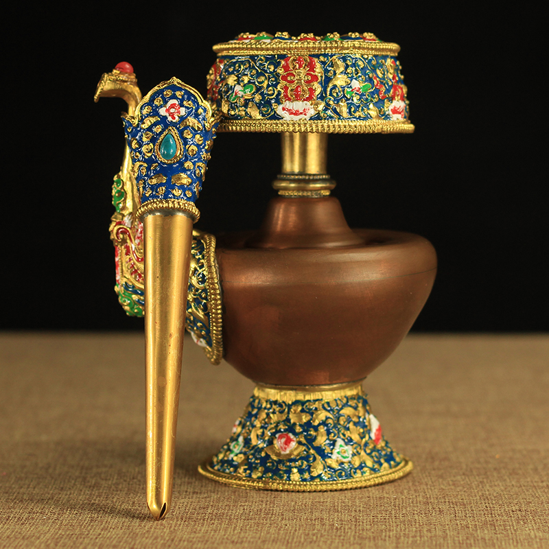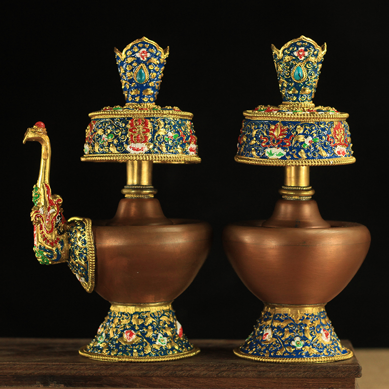 藏传密宗供品尼泊尔大小号彩绘纯铜文巴壶奔巴壶净水瓶事业瓶宝瓶