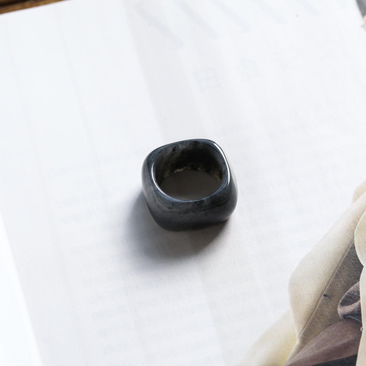13号戒指 新疆和田玉青花籽料 籽玉宽条方形指环 4381