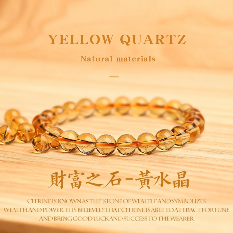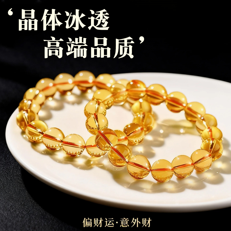 天然黄水晶手链女款收藏级招财巴西黄色水晶珠子手串男士生日礼物