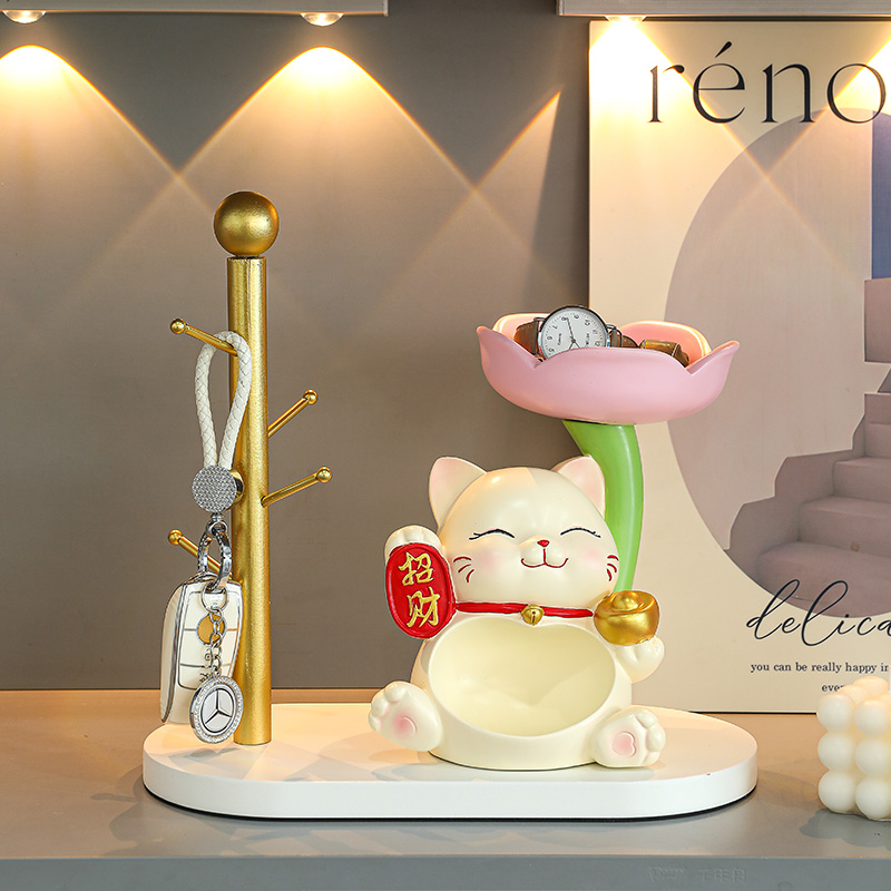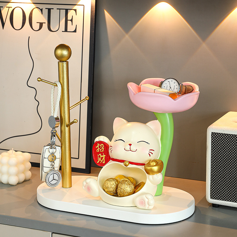 招财猫摆件入户置物架玄关钥匙收纳客厅鞋柜家居装饰乔迁新居礼品