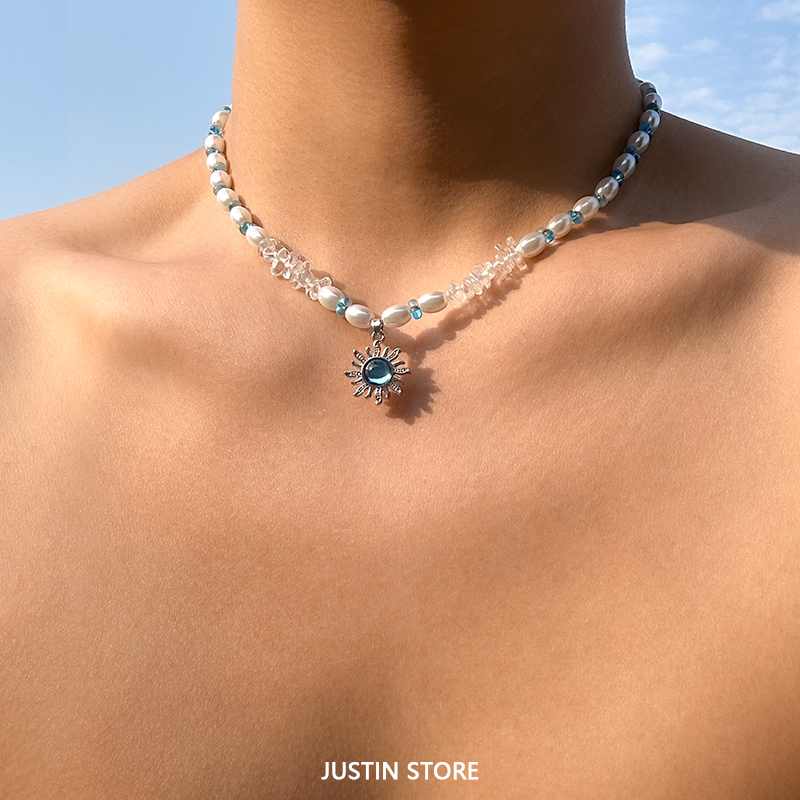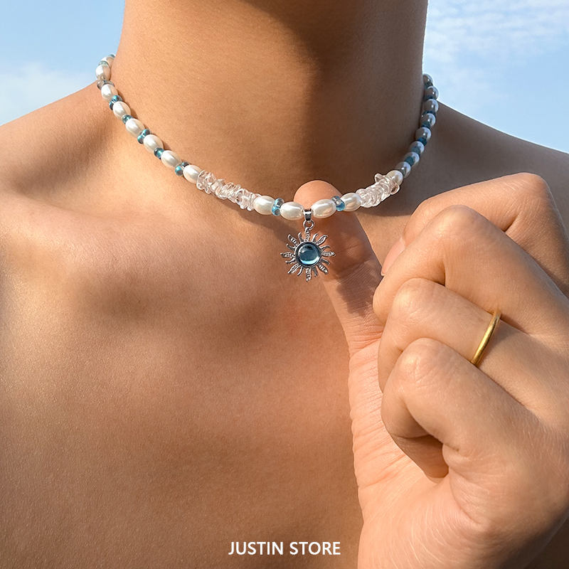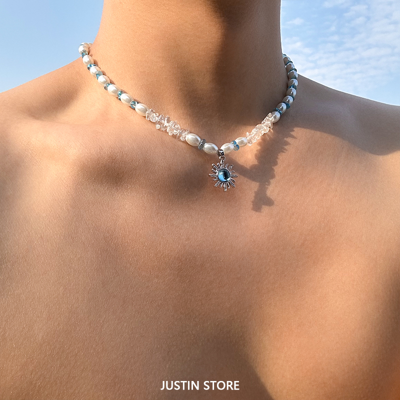 海洋之心珍珠项链男款不规则天然石串珠项链轻奢小众高级感锁骨链