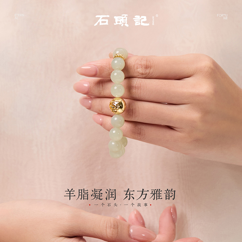 iSTONE/石头记天然和田玉手串女太阳石发晶手链高级感母亲节礼物