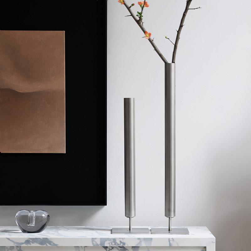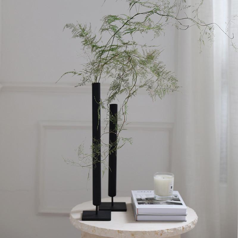 芥子侘寂风黑色高级感玄关装饰摆件极简花瓶铁艺桌面艺术插花器