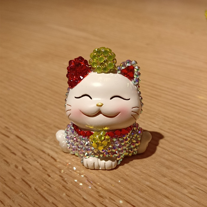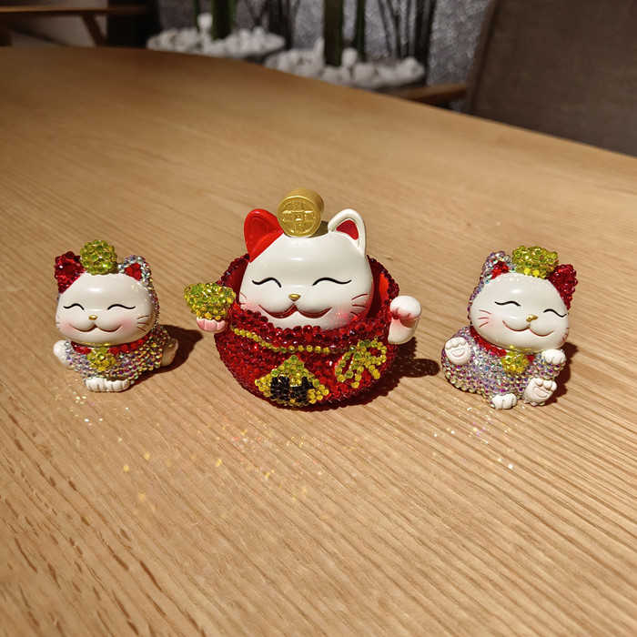 新款创意招财猫汽车中控台装饰摆件蛋糕烘焙车摆办公家居桌面贴钻