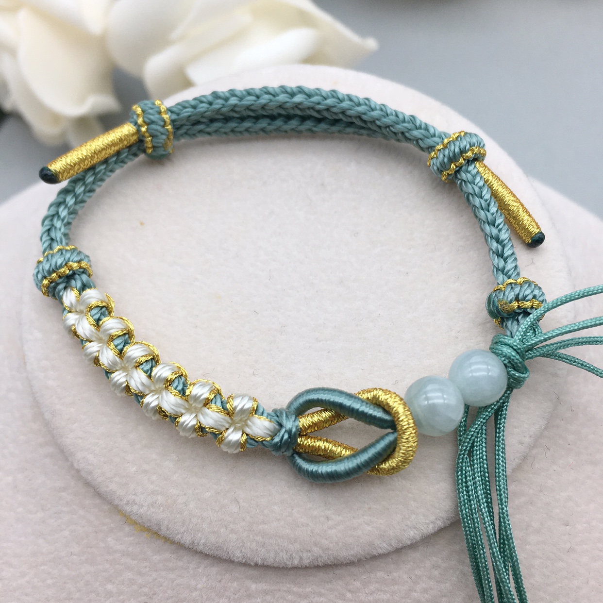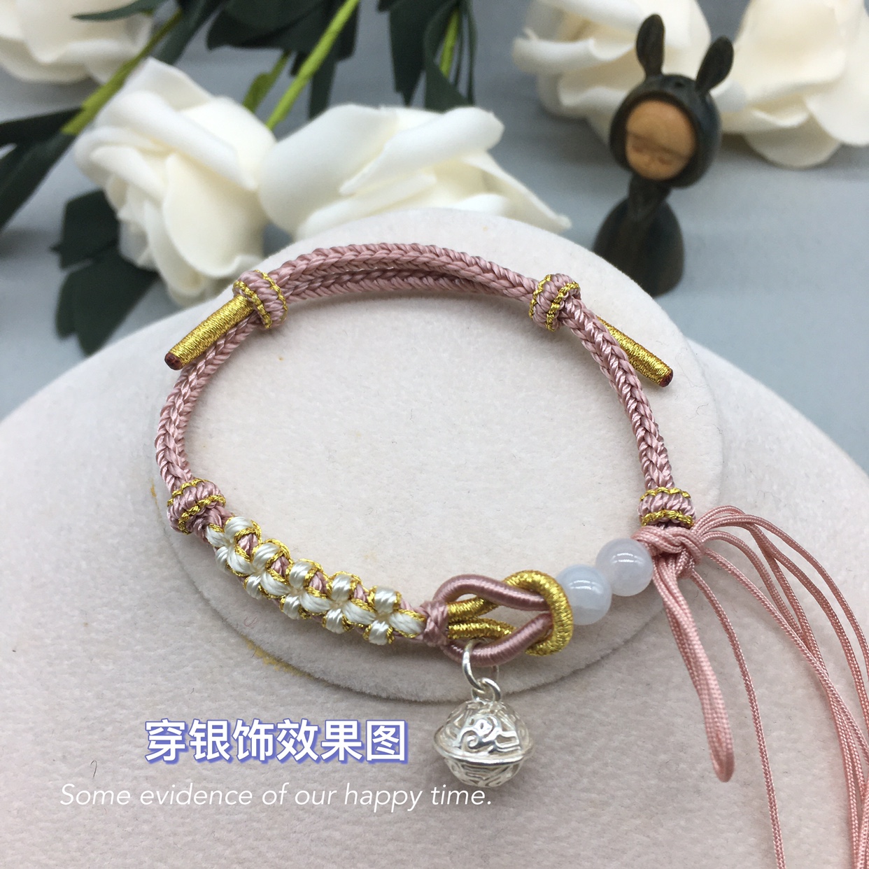 樱桃花莫相离结开口款编绳手链可直接穿黄金饰品铃兰吊坠闺蜜手绳