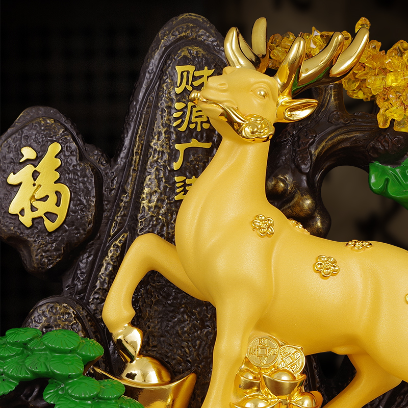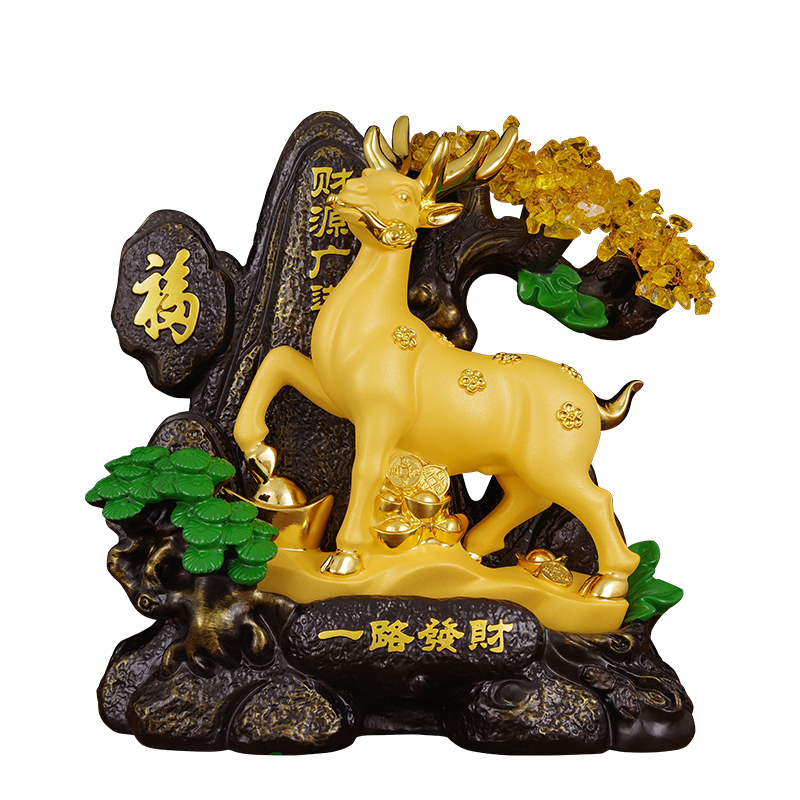 一路发财梅花鹿大号摆件收银台办公室桌客厅送朋友开业水晶发财树