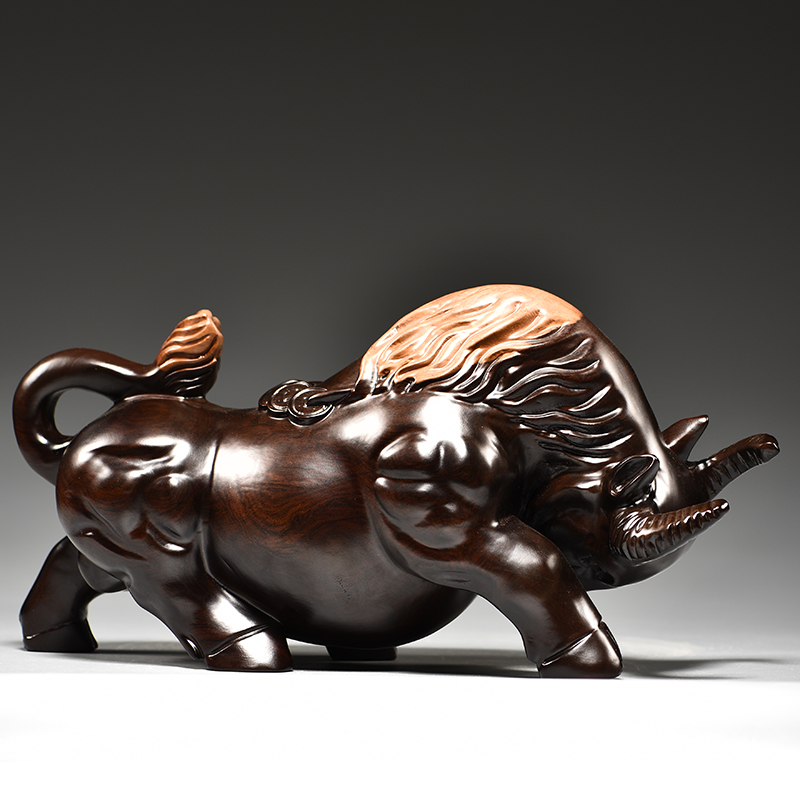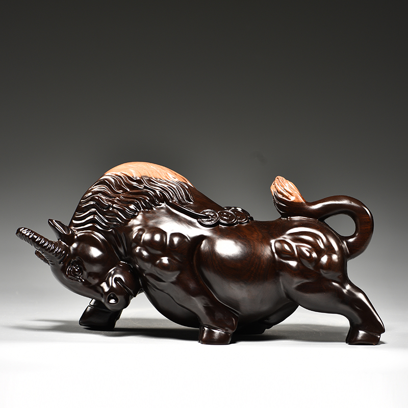 黑檀木雕牛摆件生肖牛运势如虹实木雕刻红木家居吉祥物装饰工艺品