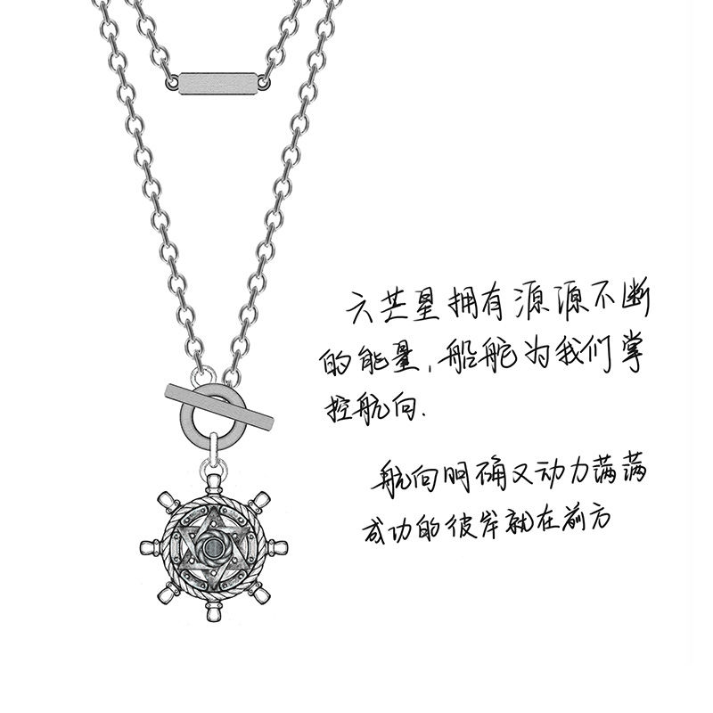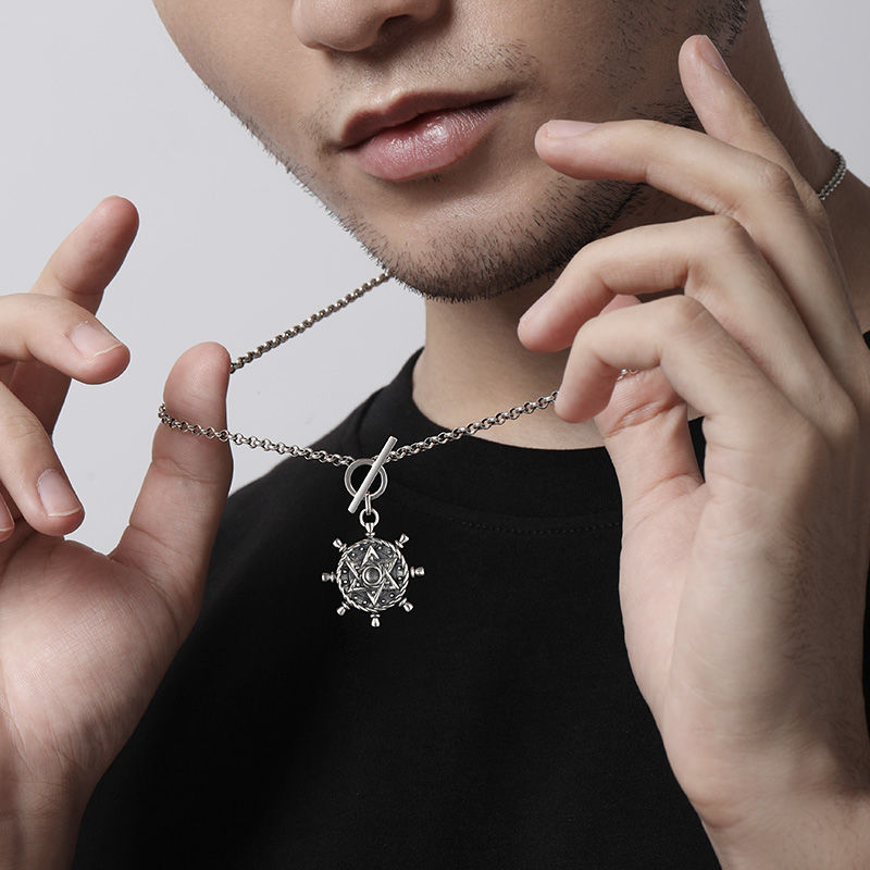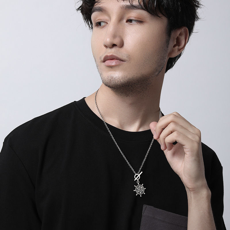 原创船舵星符项链纯银潮牌百搭项链吊坠男潮不掉色嘻哈轻奢小众
