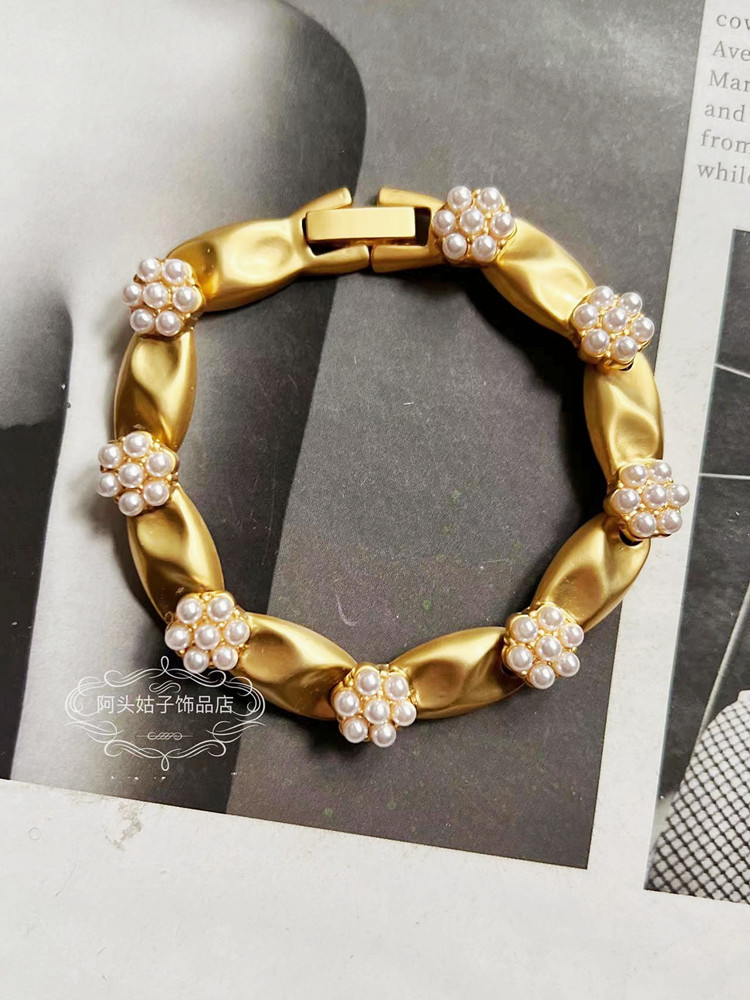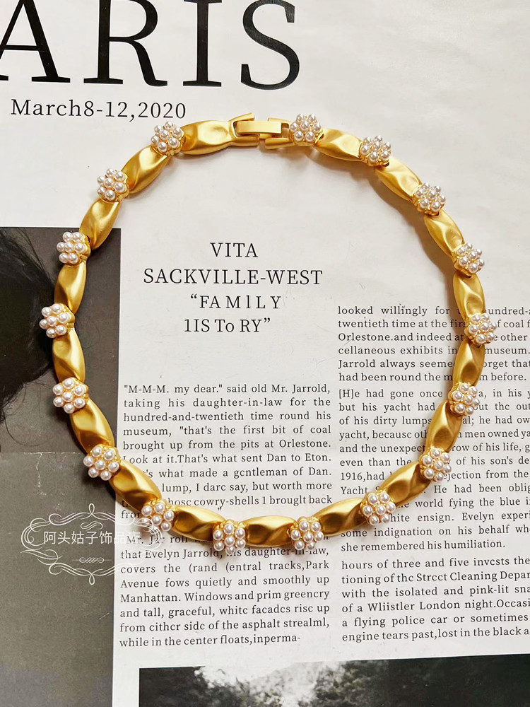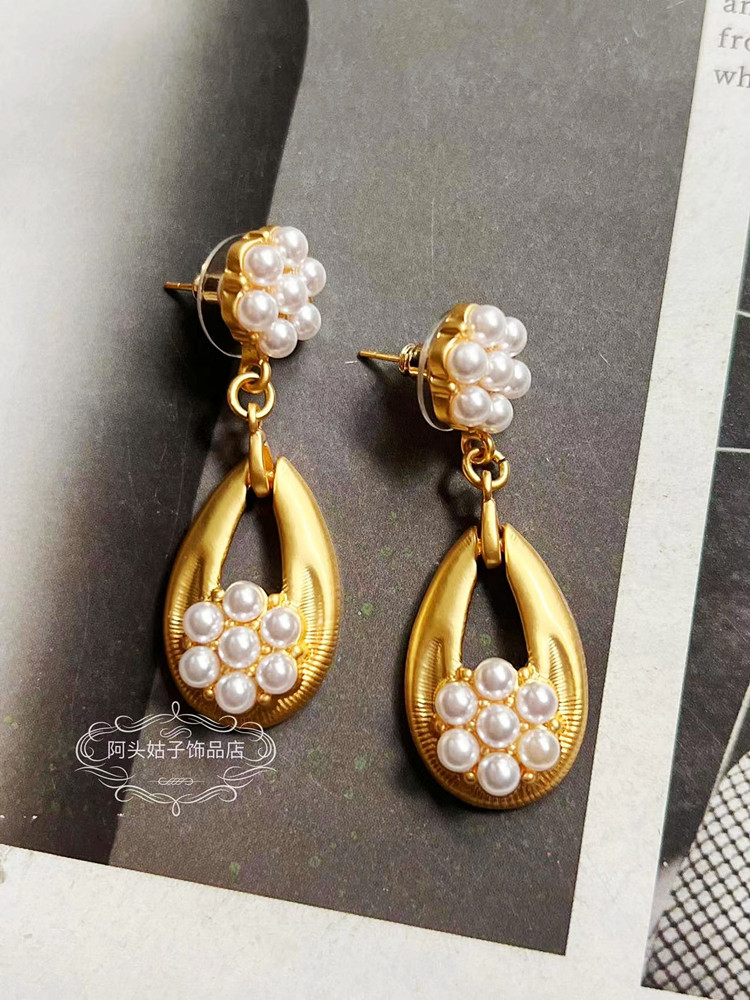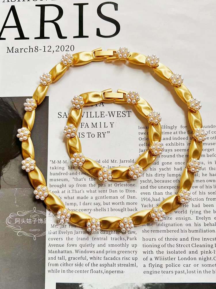 欧美宫廷中古风vintage复古气质珍珠花朵金属缎带耳环手链项链女