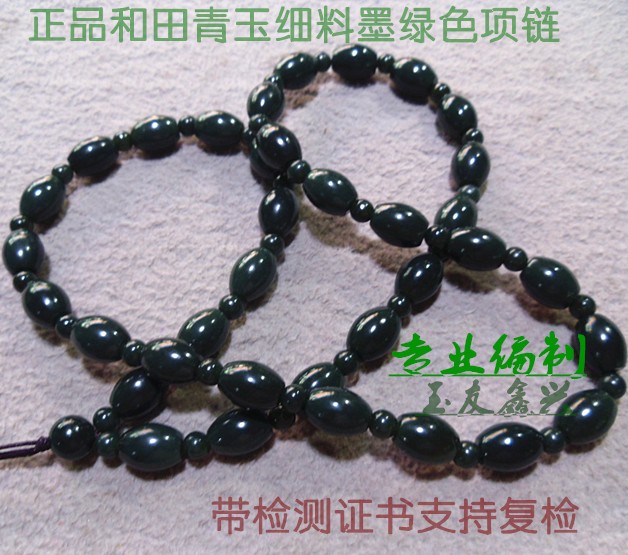 新疆和田玉项链男款塔青深墨绿色椭圆米珠路路通超大号转运珠链子