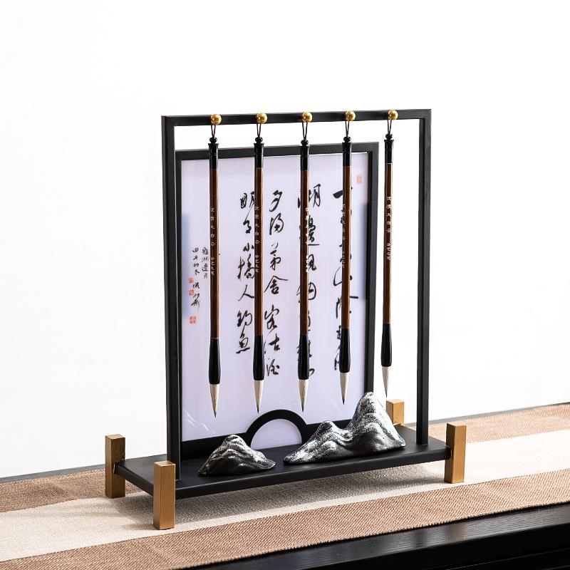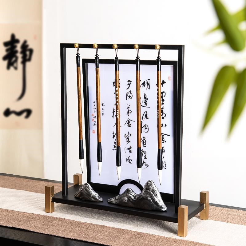 新中式书c房摆件书桌条案毛笔架摆设创意金属亚克力假山毛架装饰