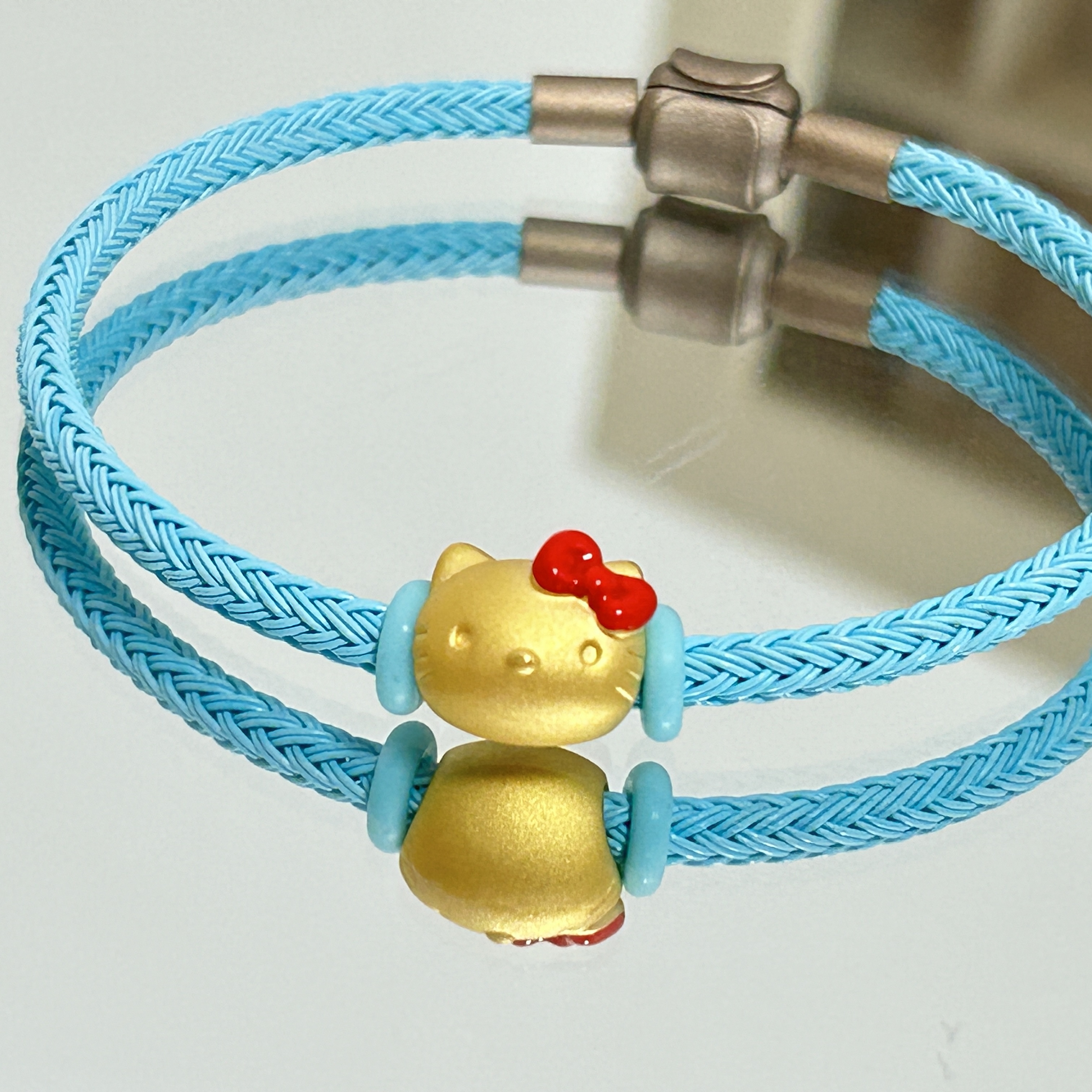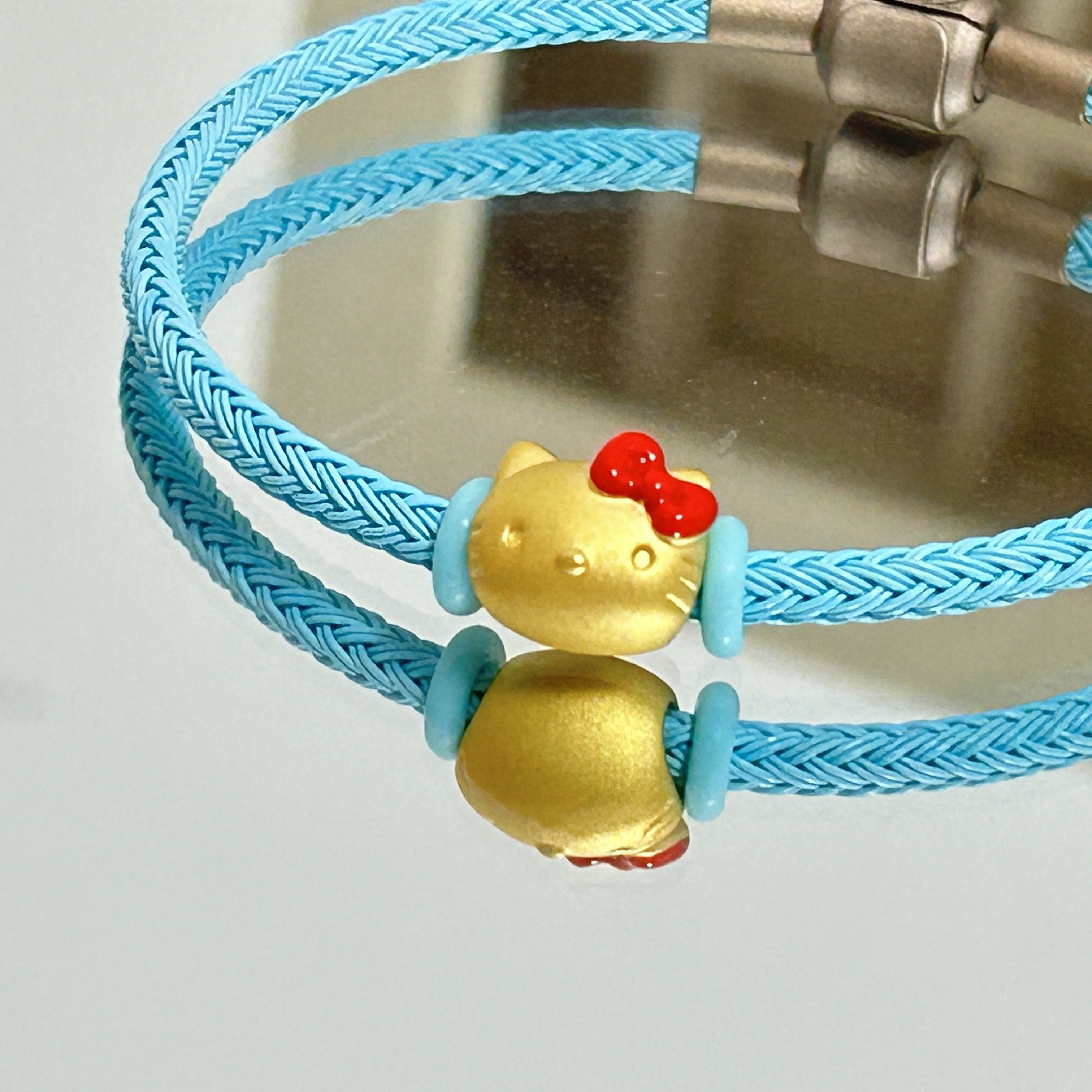 黄金hello kitty足金999红色蝴蝶结KT手链 送女友老婆情人节礼物