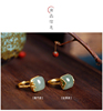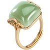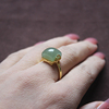 仿和田玉碧玉祥云戒指古法金玉石可调节复古宫廷风礼物送老婆妈妈