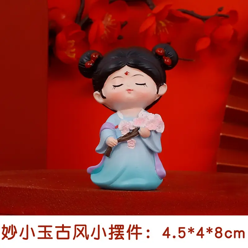 新款古风摆件妙小玉国潮女孩树脂工艺家居装饰旅游景点礼物