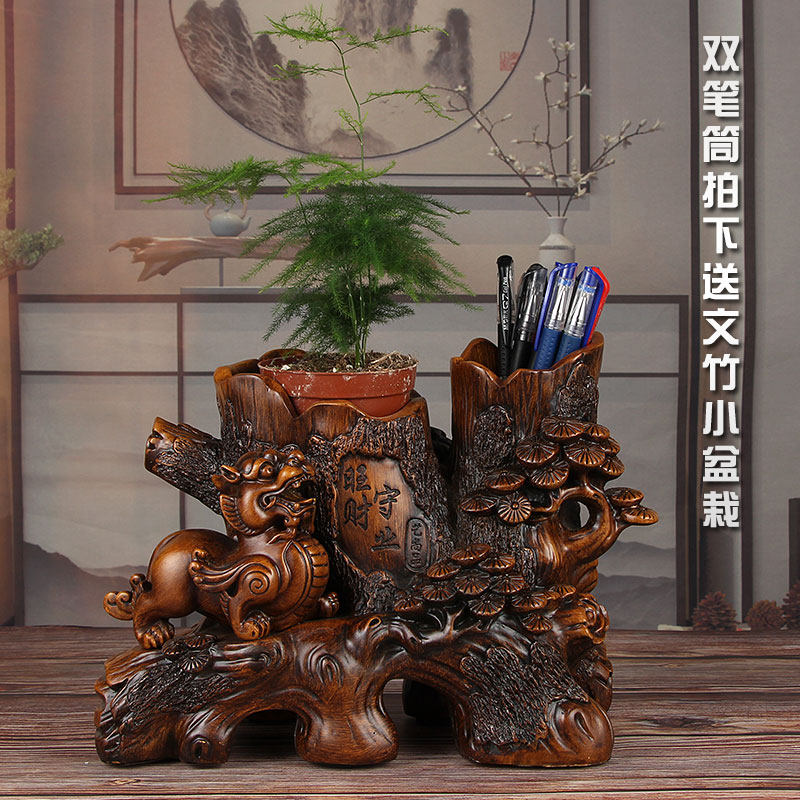 艺尚品 旺财守业双笔筒招财貔貅摆件 办公室桌面摆设实用工艺装饰