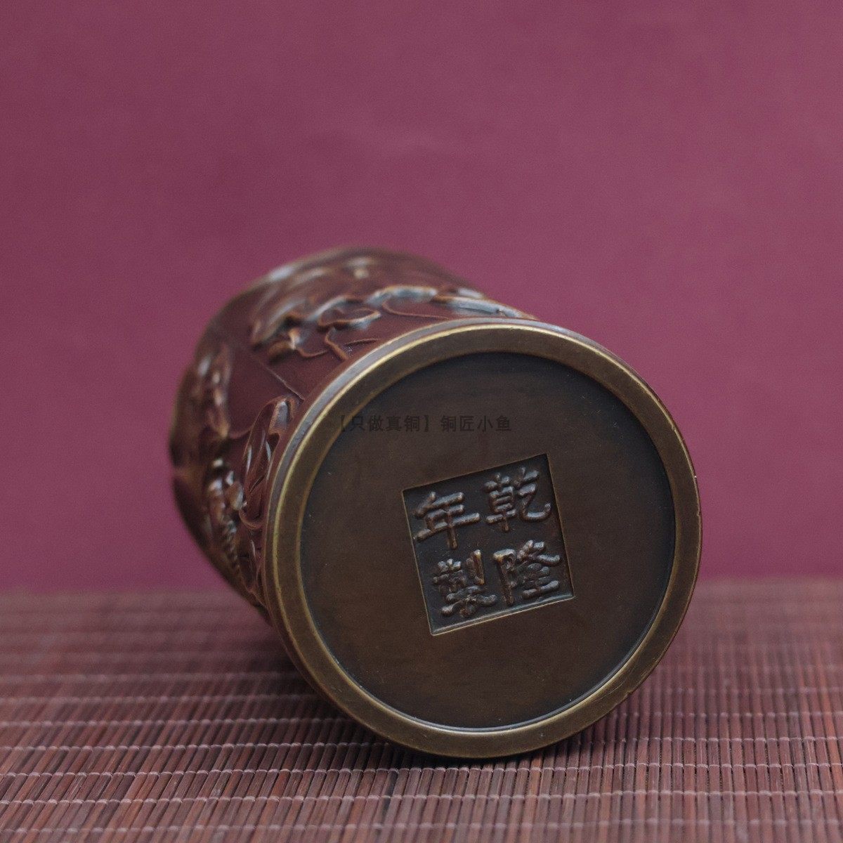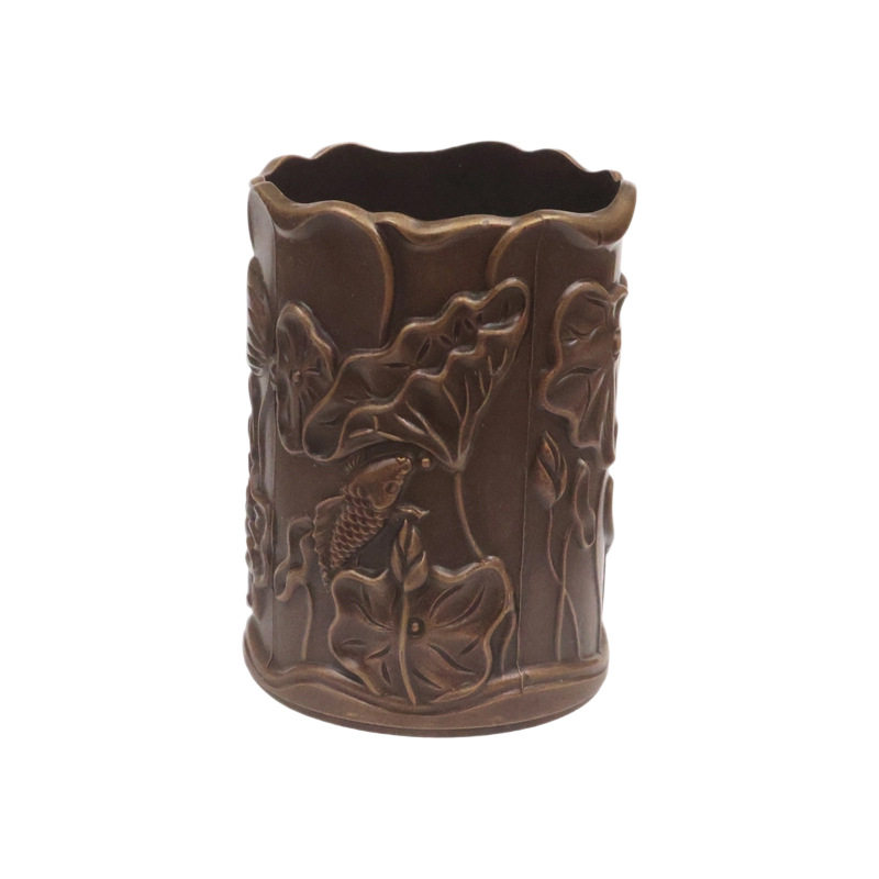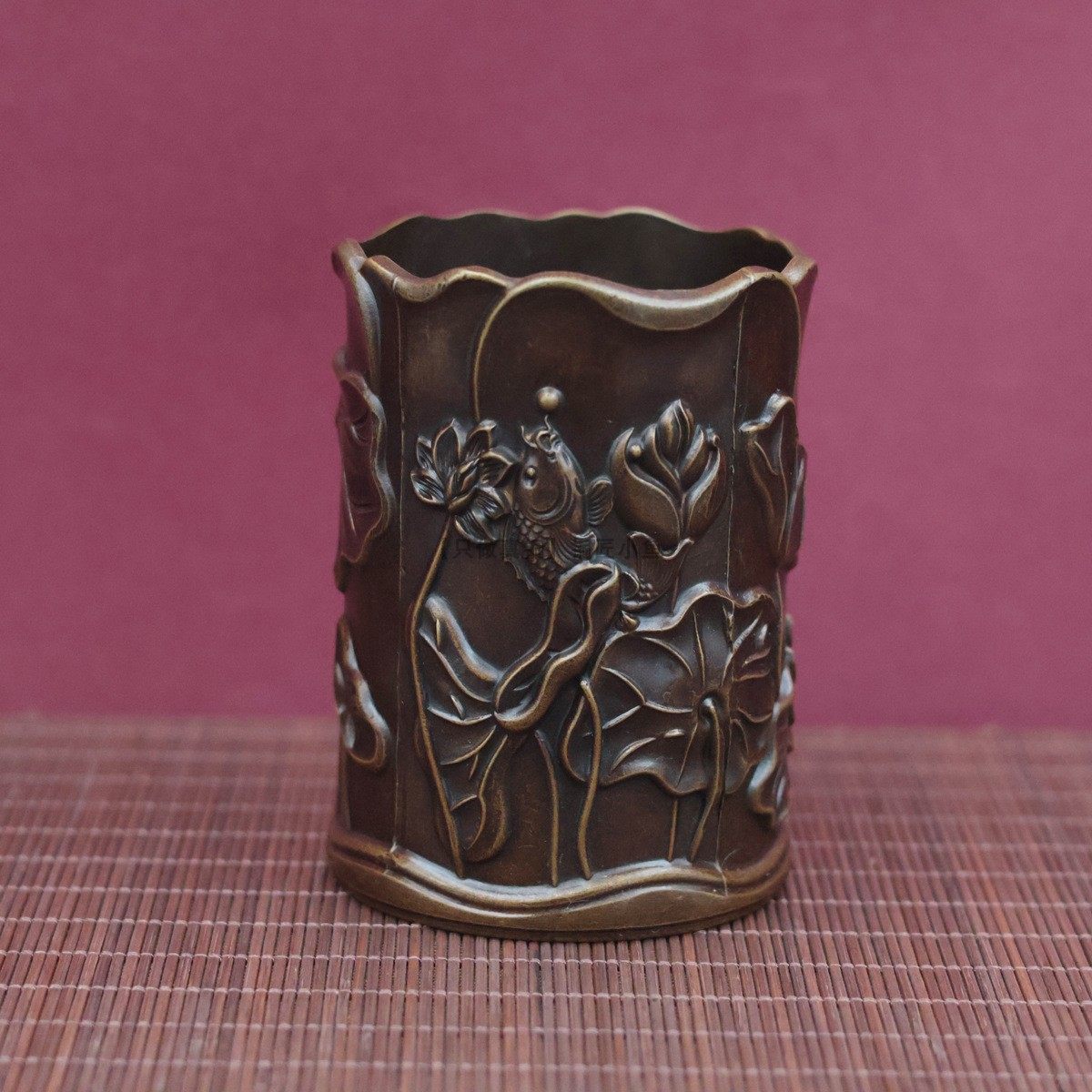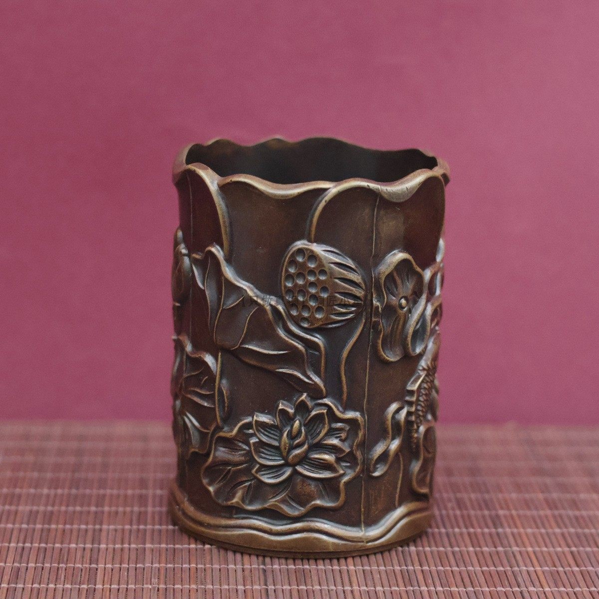 实心纯铜荷花笔筒仿古董复古风开口储物盒笔盒禅意古铜装饰品摆件