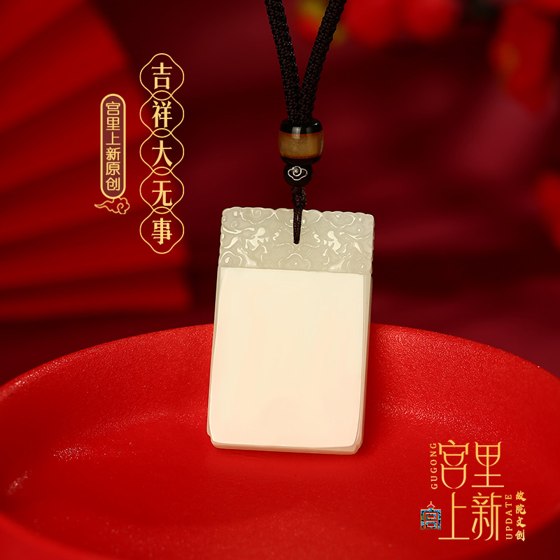 宫里上新无事牌和田玉男士玉吊坠项链真品玉石玉佩生日礼物送老公