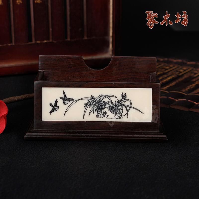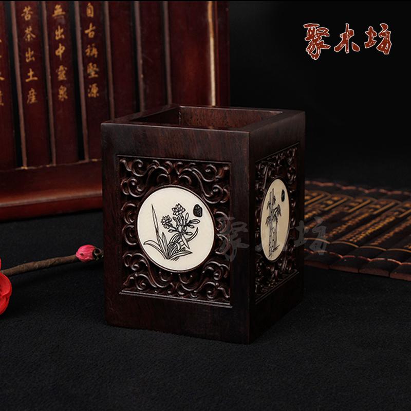 高档办公桌黑檀实木摆件老板办公室桌面海鲸牙雕刻笔筒送领导礼品