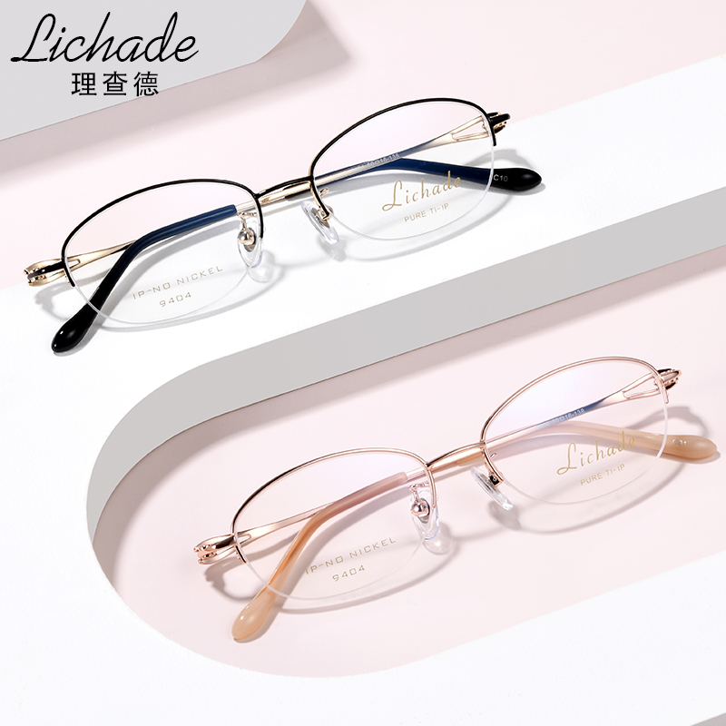 超轻半框近视眼镜框女士商务高度数眼镜架配成品防蓝光镜LCD9404