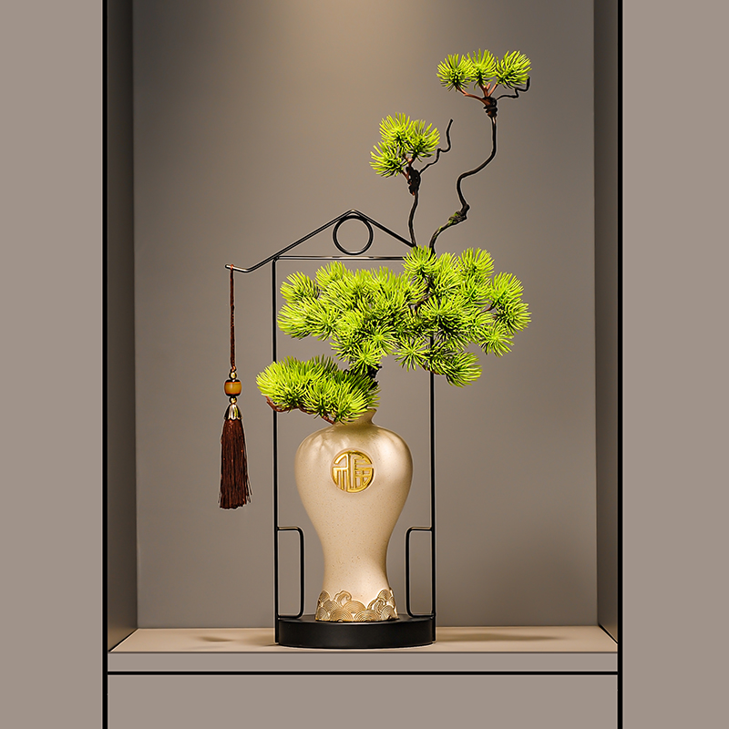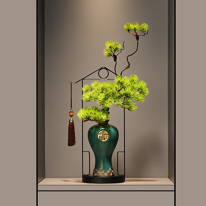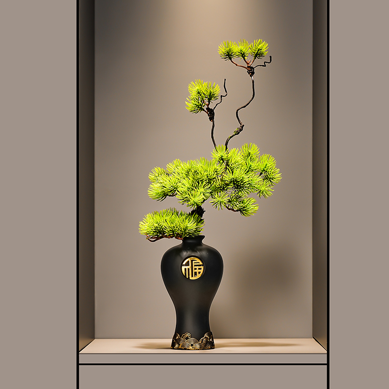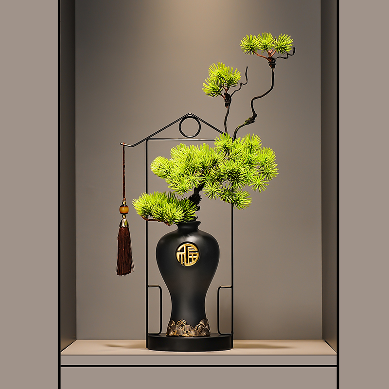 新中式细长花瓶入户玄关摆件客厅迎客松办公室博古架装饰品高级感