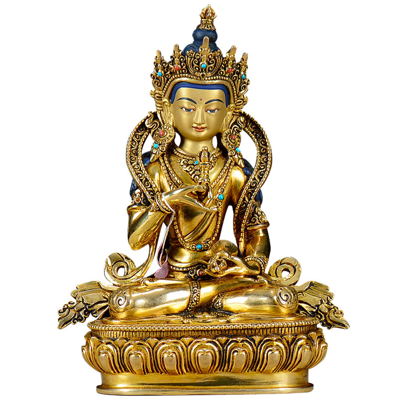 金刚萨埵铜像尼泊尔铜镀金7寸雕花现代现代客厅桌面摆件