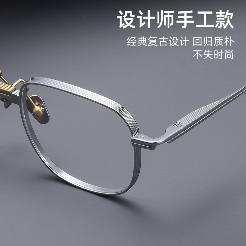 日本手造纯钛近视眼镜框男款复古宽边设计师大框显瘦高度数眼睛架
