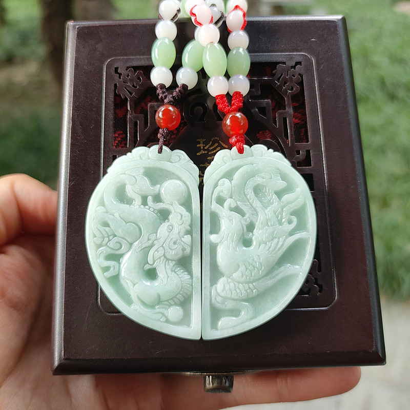 心玉行七夕情人节翡翠A货龙凤玉佩情侣吊坠一对刻字项链男女礼物