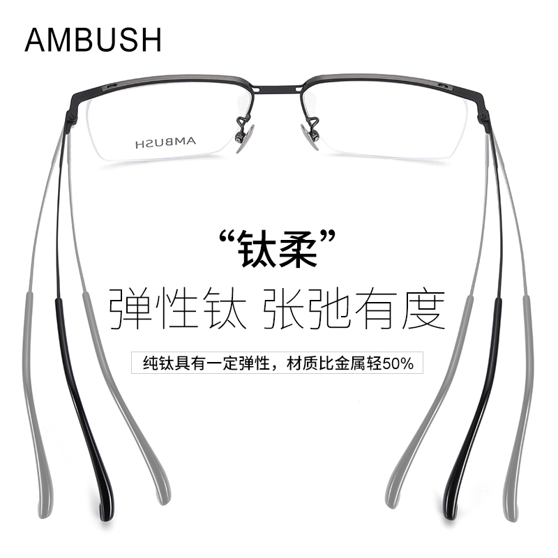 ambush纯钛眼镜框近视眼镜架男半框 眉线框 配眼镜成品近视 超轻