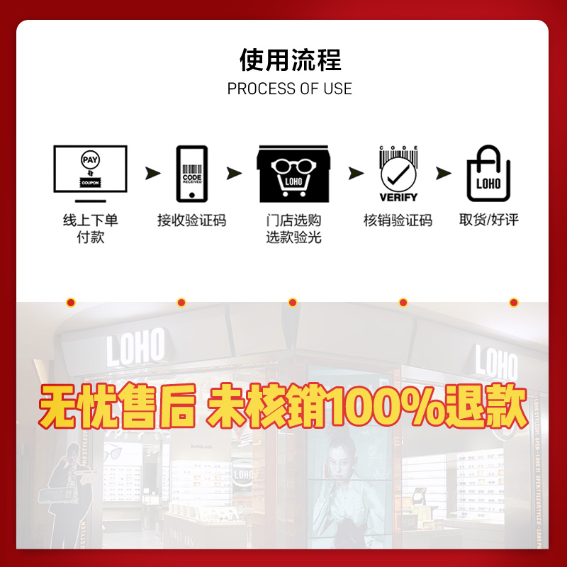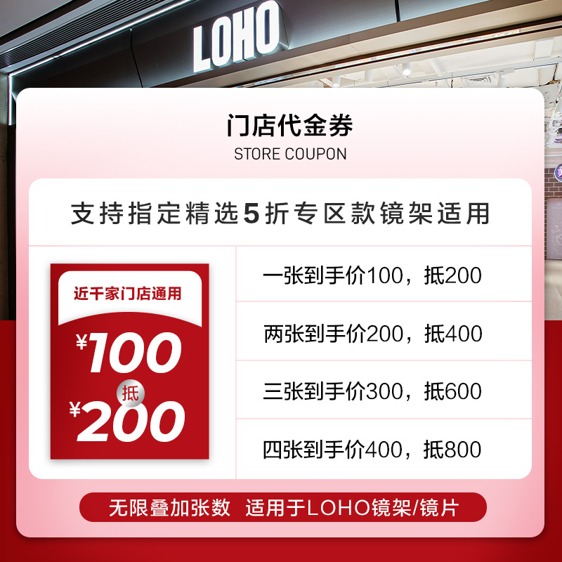 LOHO眼镜5折门店代金券精选款太阳镜光学镜可配近视指定商品可用