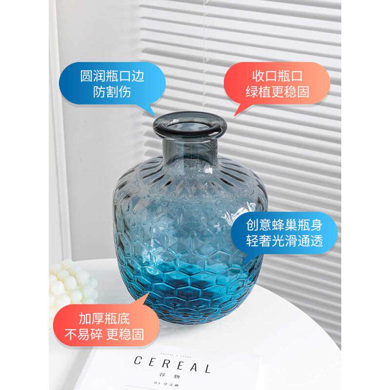 美式乡村可水培花瓶渐变蓝色蜂窝花器客厅玄关样板间插画装饰品