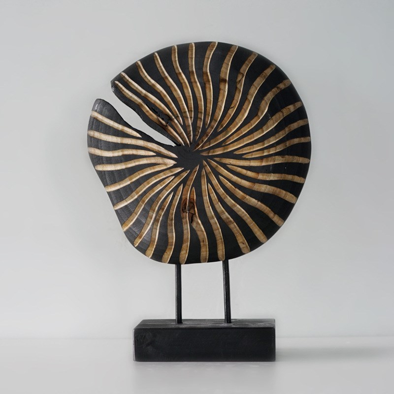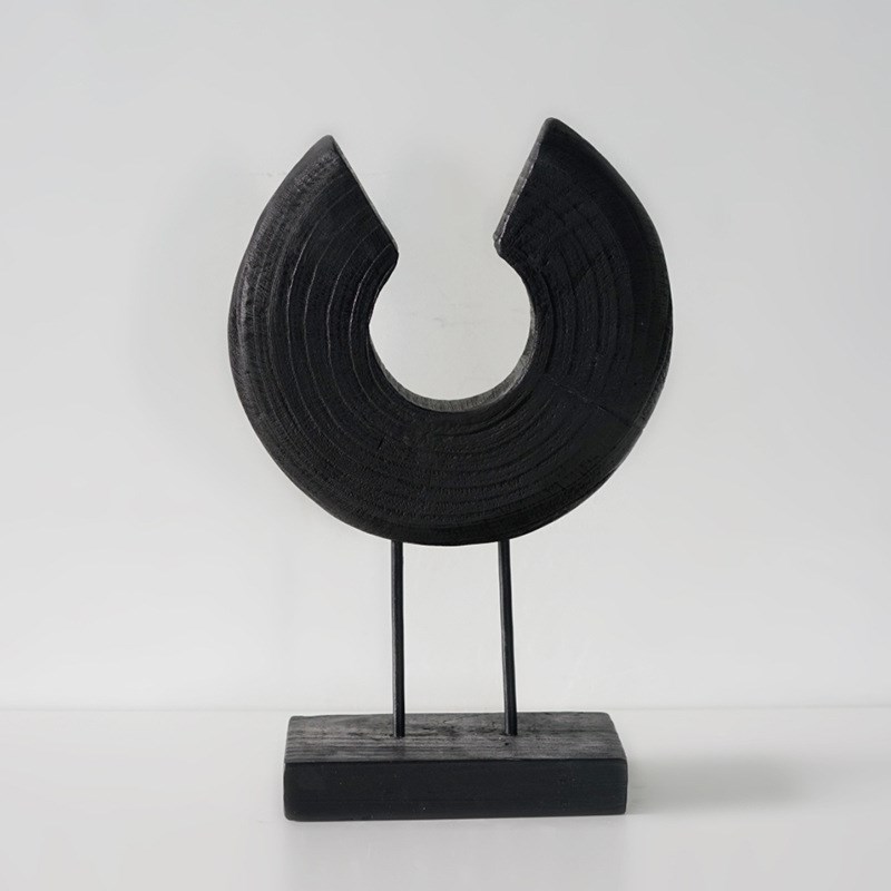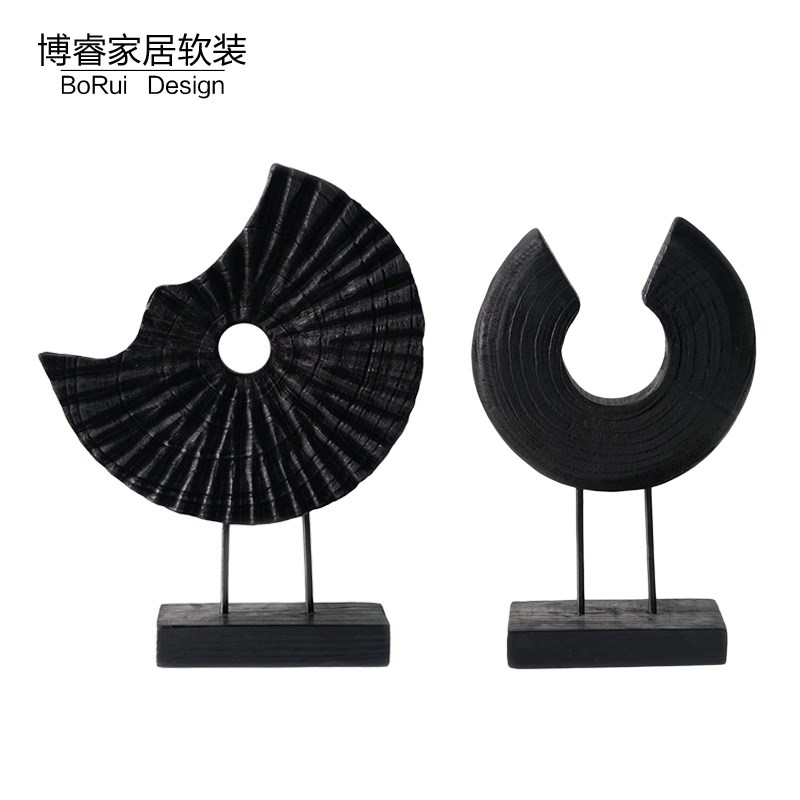 新中式现代实木雕刻不规则摆件样板间桌面玄关艺术木雕圆形装饰品