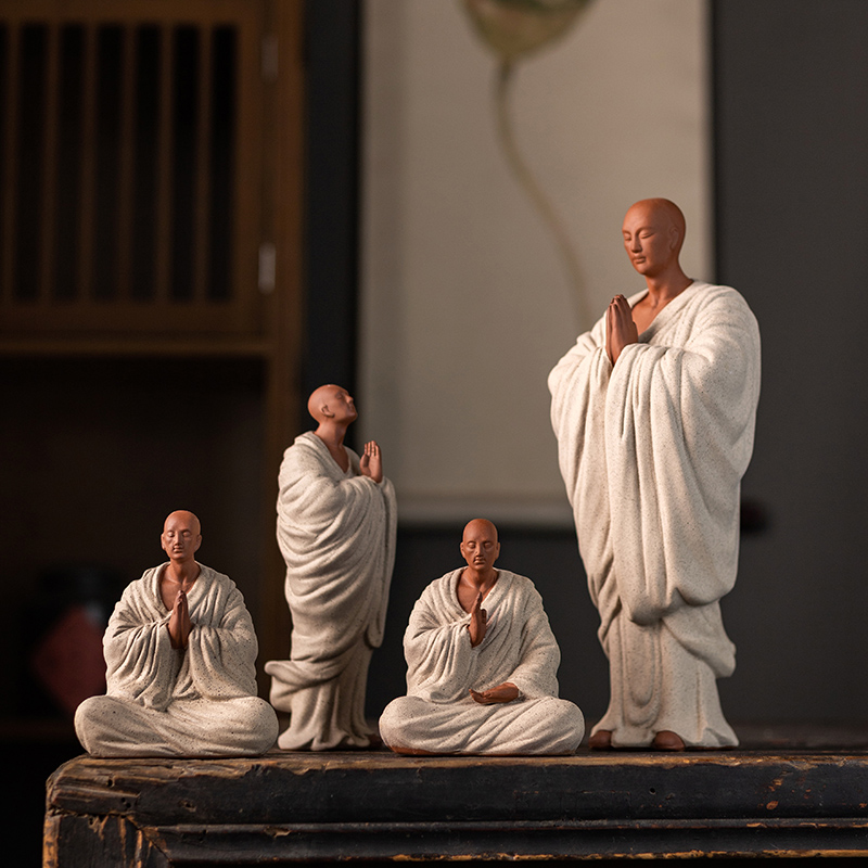创意紫砂小和尚禅意人物茶室桌面茶空间造景装饰摆设茶宠茶玩摆件