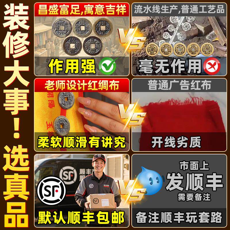 真品五帝钱压门槛铜钱过门石下出入平安北斗七星阵招财貔貅装修用