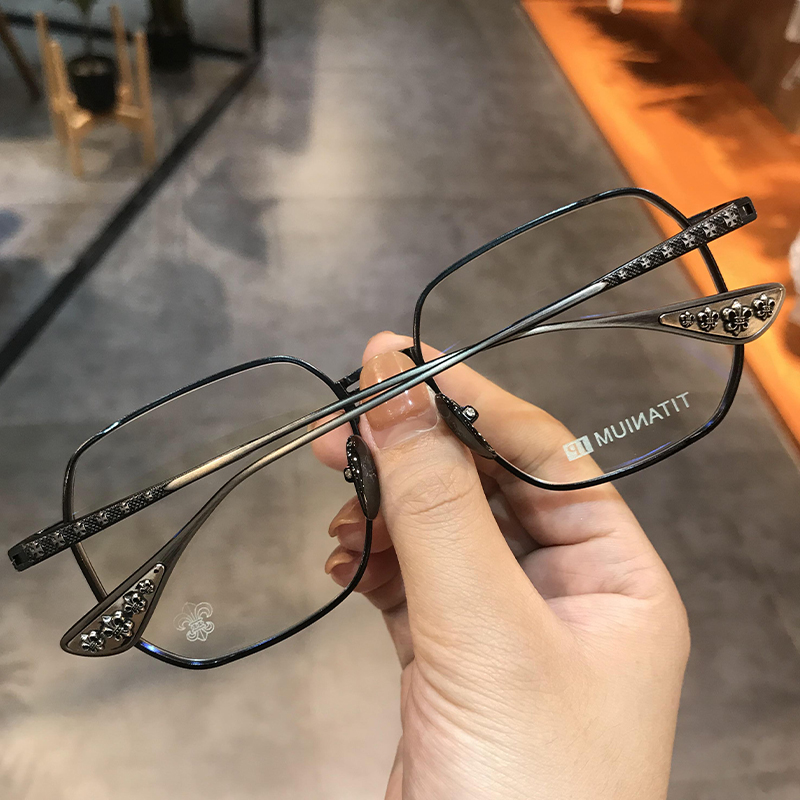 简丹萝心潮百搭眼镜框架男女大脸复古文艺钛架超轻近视防蓝光变色