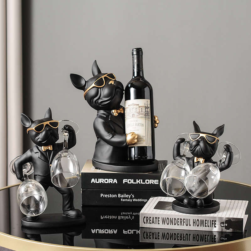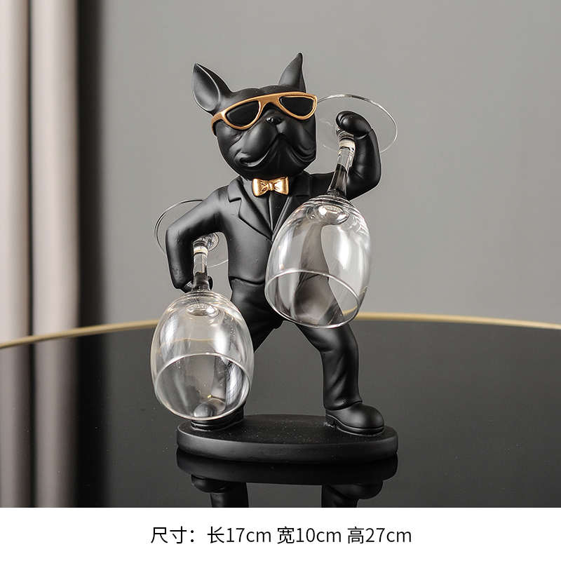 斗牛犬红酒架摆件现代轻奢高档客厅酒柜装饰创意家居餐边柜狗摆设