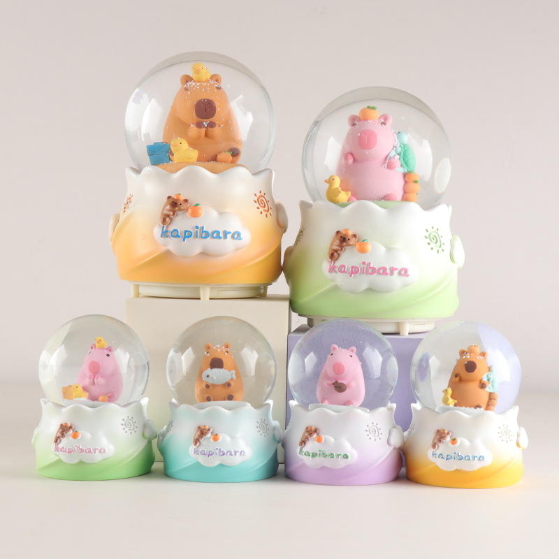 网红卡了巴拉水晶球大音乐盒摆件水豚发光飘雪八音盒女孩生日礼物