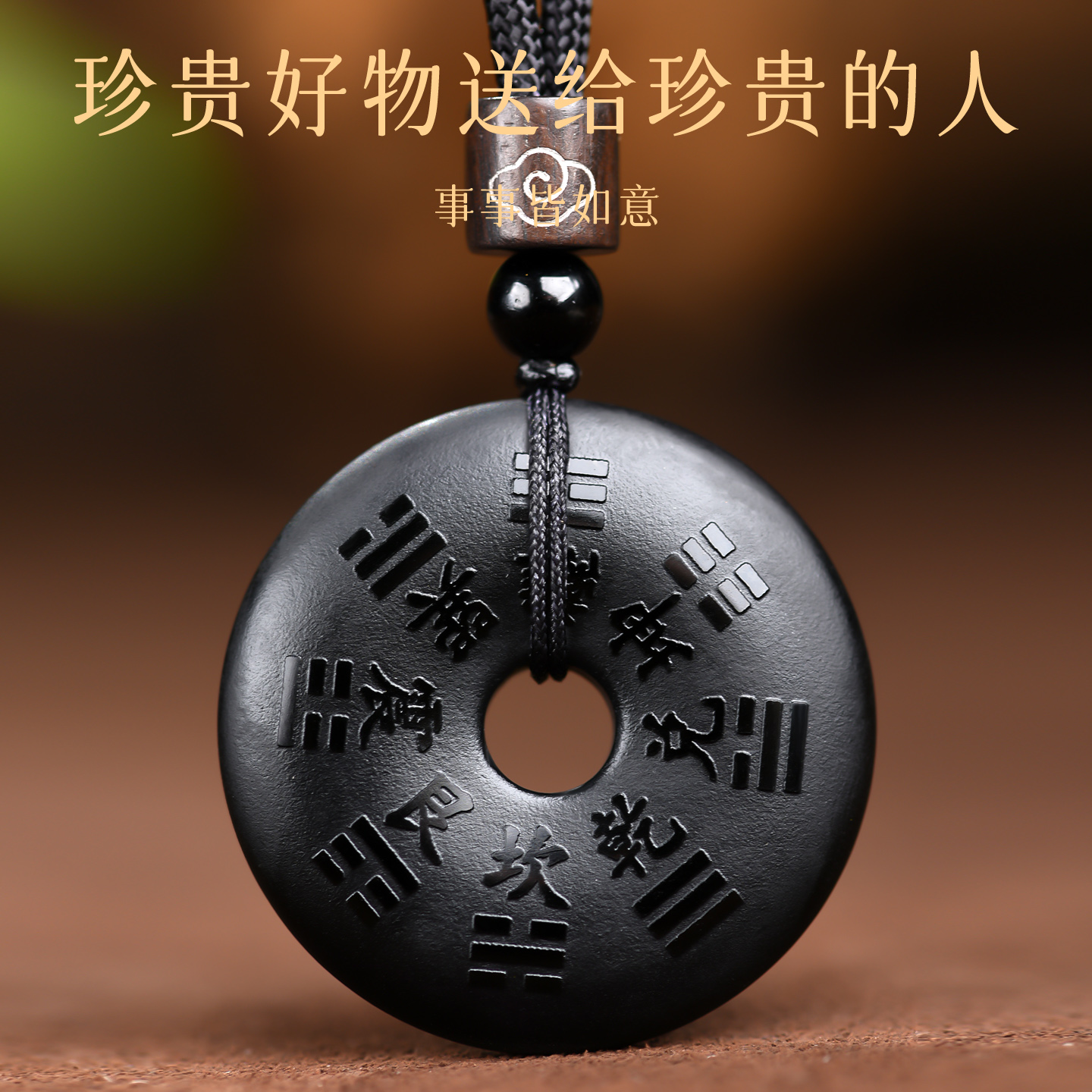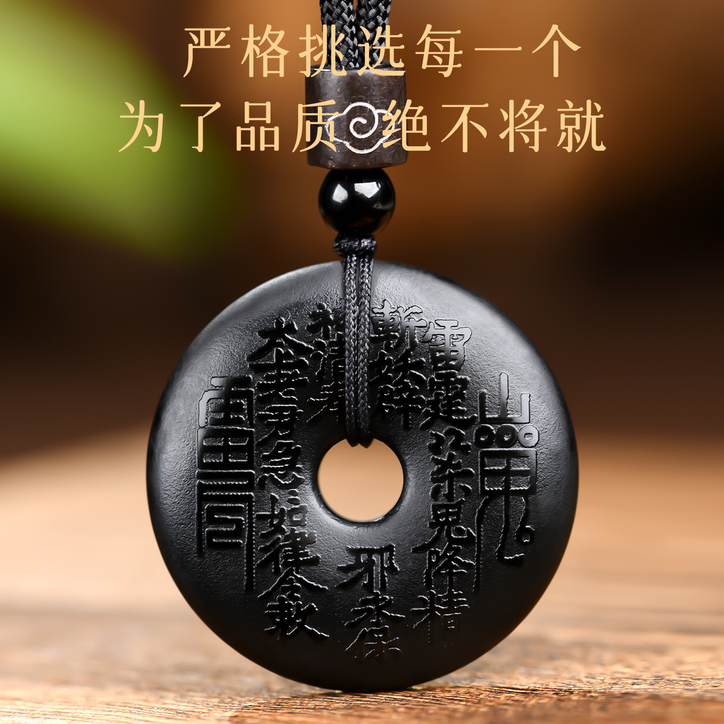 黑曜石山鬼花钱吊坠本命年护身符男平安扣钥匙扣圆牌挂件女款项链
