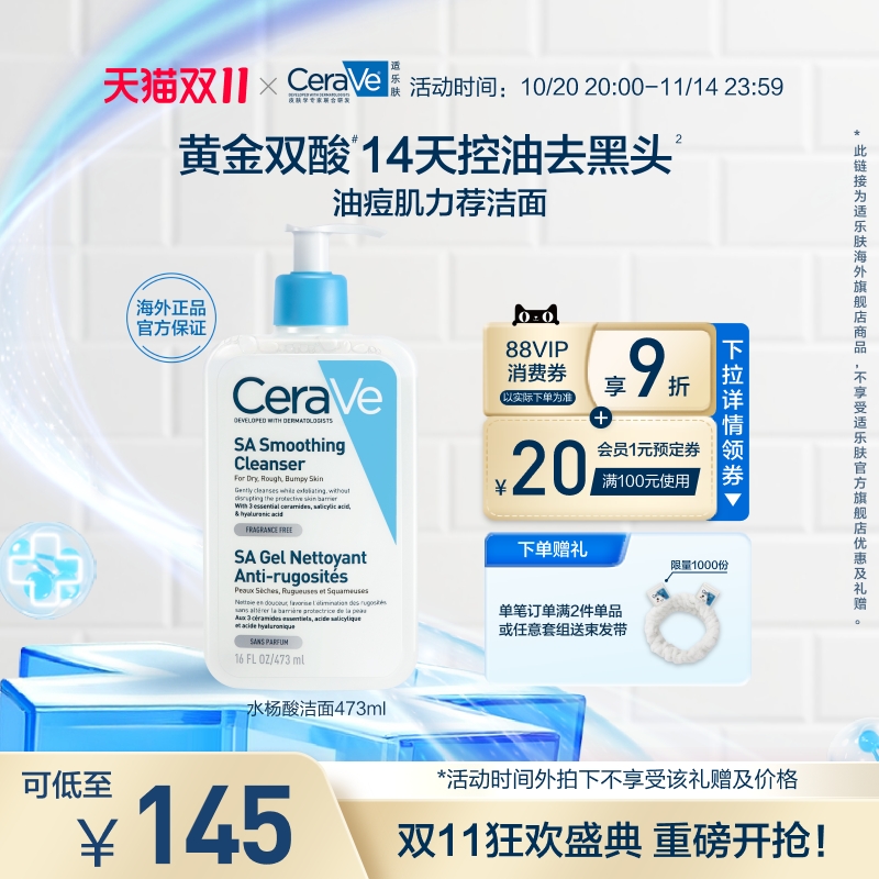 【海外店】CeraVe适乐肤水杨酸洁面控油祛痘去闭口黑头洗面奶