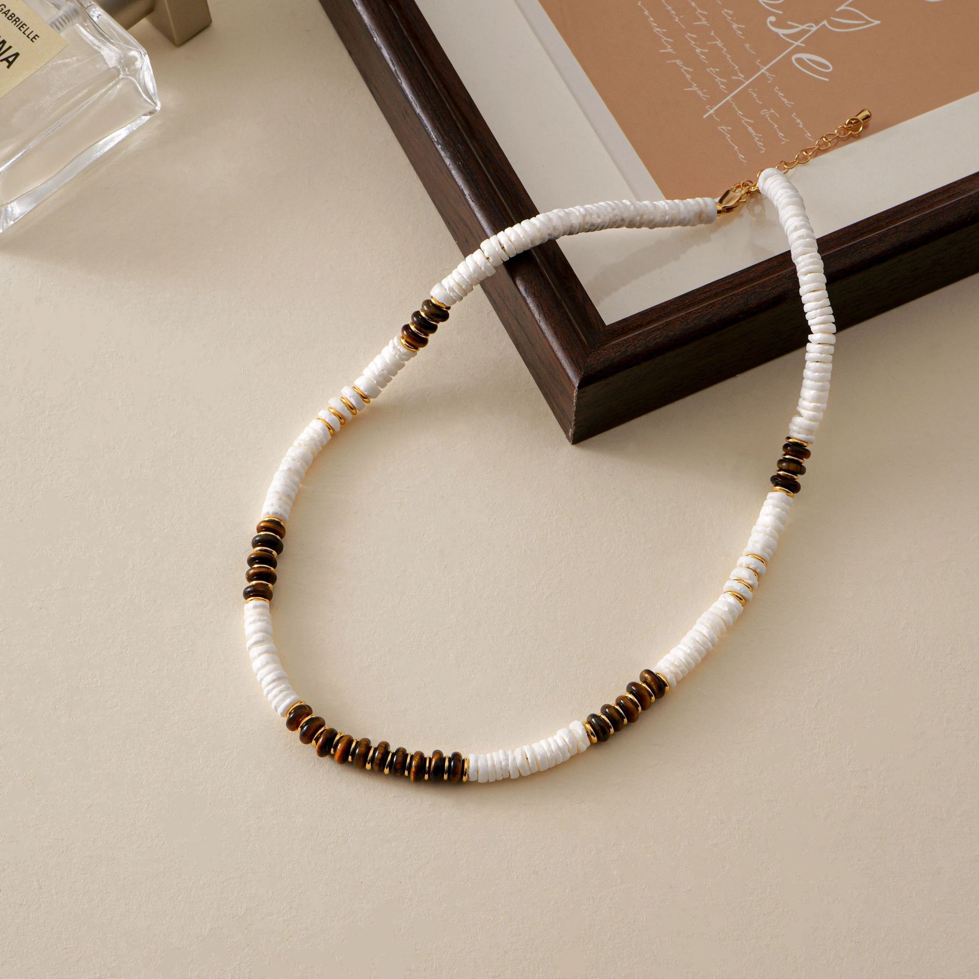 日本品质天然石毛衣链复古虎眼石秋冬新款项链配饰女欧美风轻奢饰