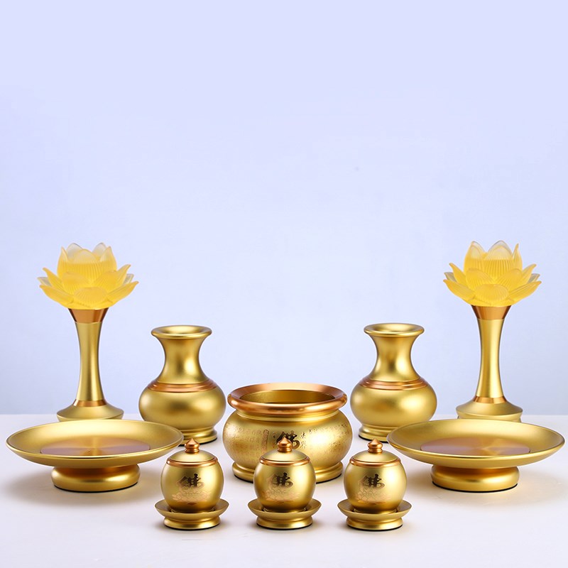 速发佛前供奉心品具套家用财神供全整套装用经香炉充电莲花灯供盘