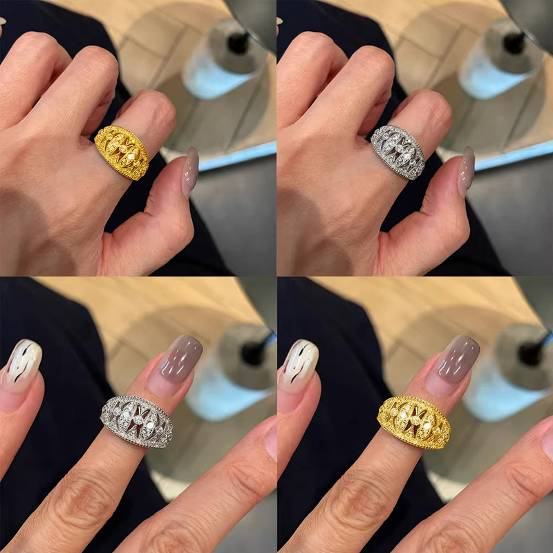 叠戴复古排钻戒指轻奢时尚简约镶钻宫廷雕花灯笼条戒