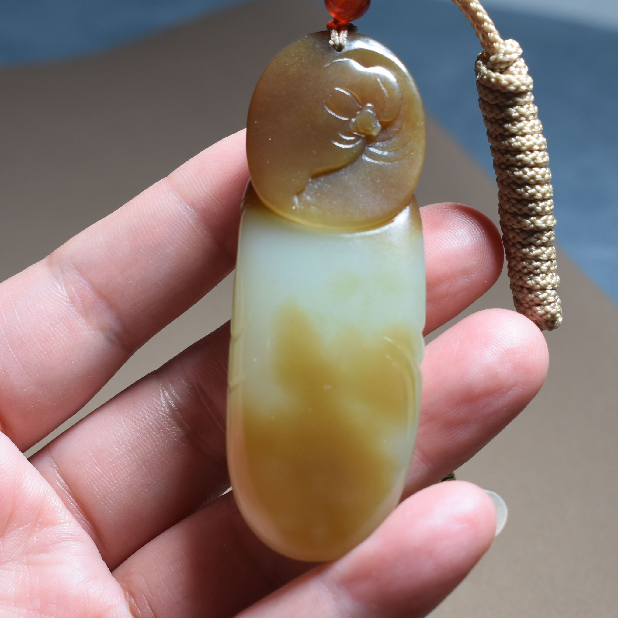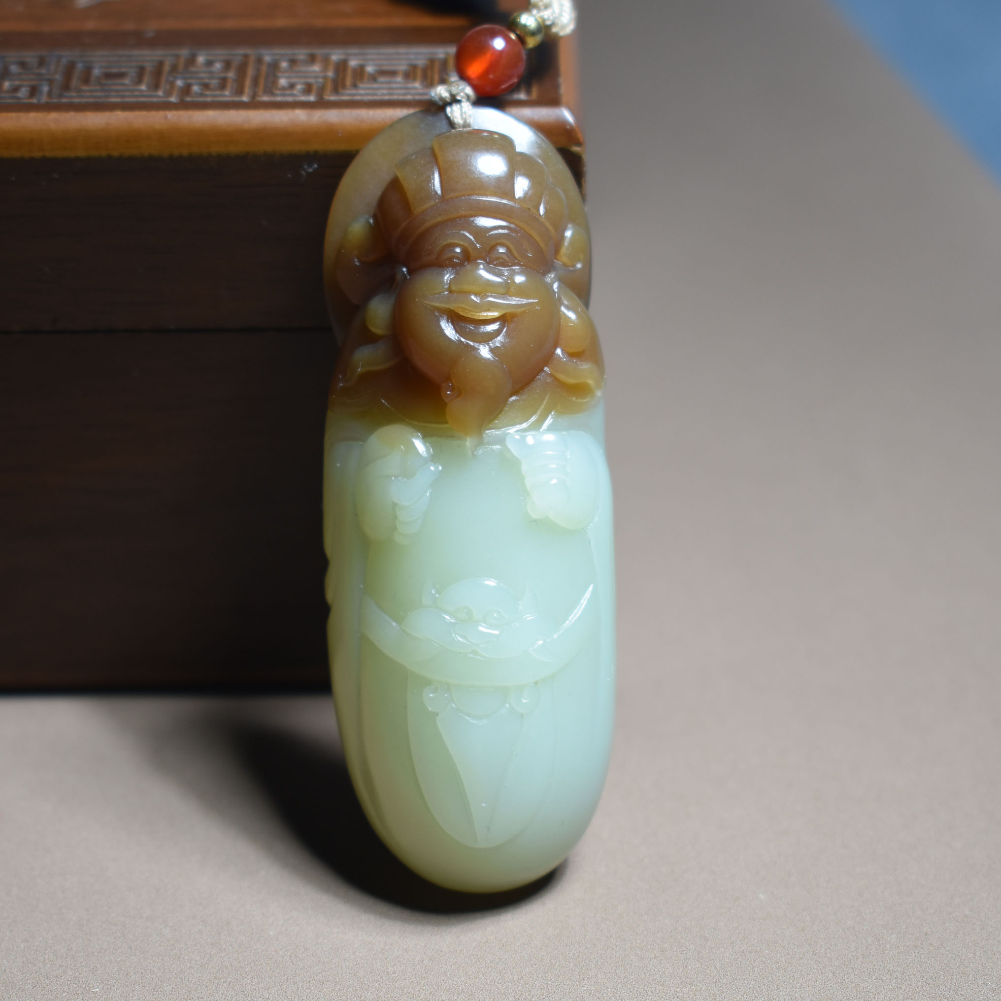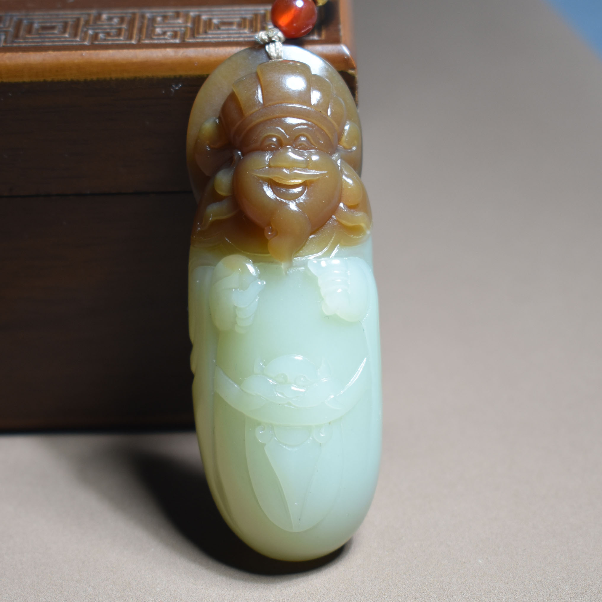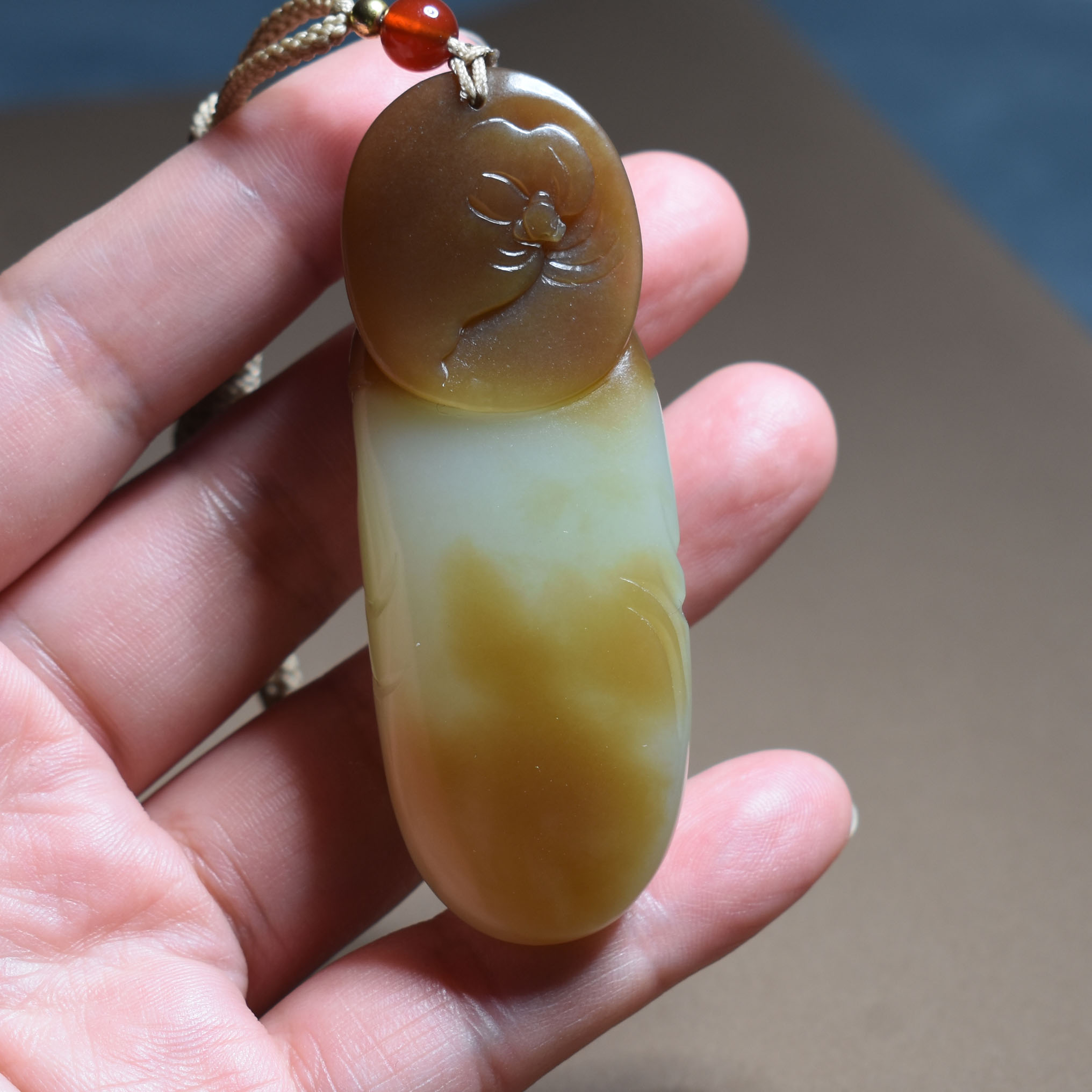震惊级方言和田玉精品新疆且末油润细腻黄糖白玉财神吊坠挂件X3