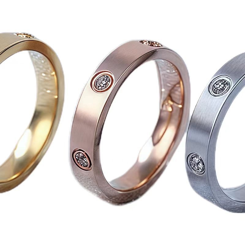 爆款网红镶钻钛钢戒指女高级感不掉色六钻戒指