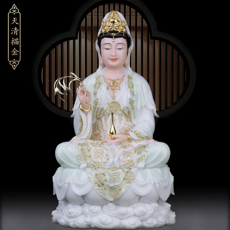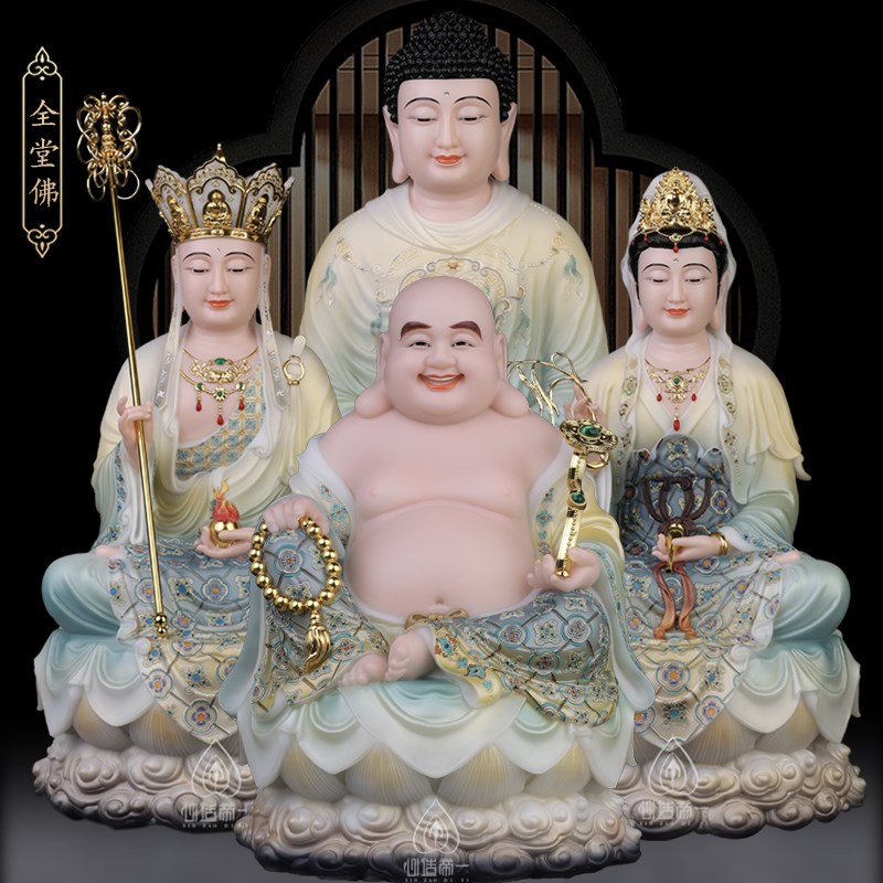 速发实心汉白玉彩绘娑婆三圣释迦摩尼佛地藏王菩萨坐莲观音菩萨像
