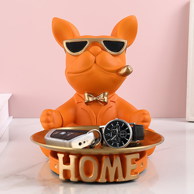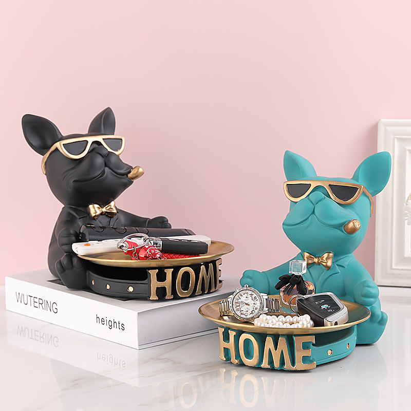 创意法斗犬托盘进门口玄关钥匙收纳摆件客厅电视柜家居装饰品入户