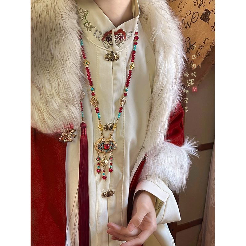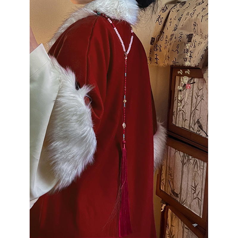 [岁华]新中式红色璎珞背云流苏项链国风古风明制马面裙汉服配饰