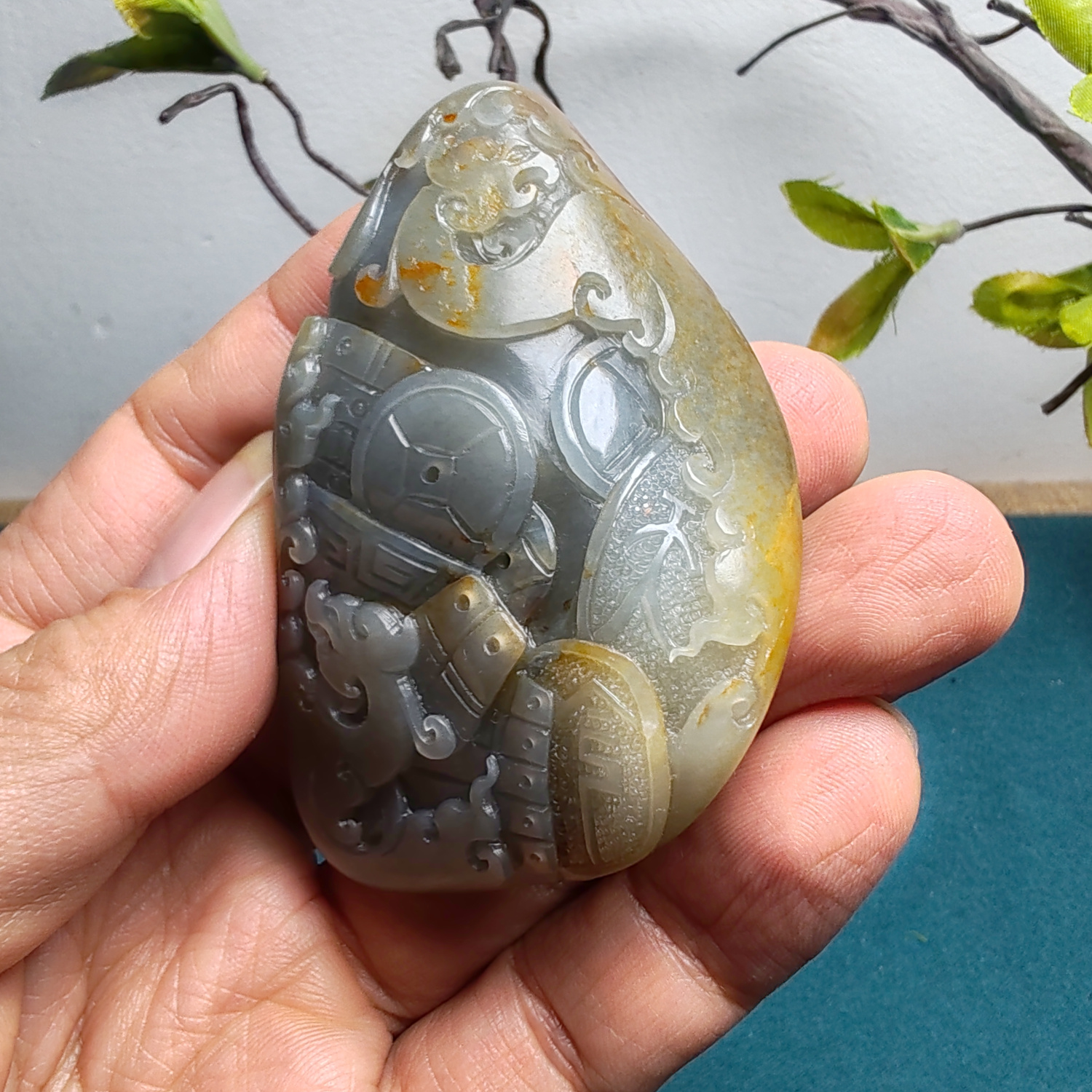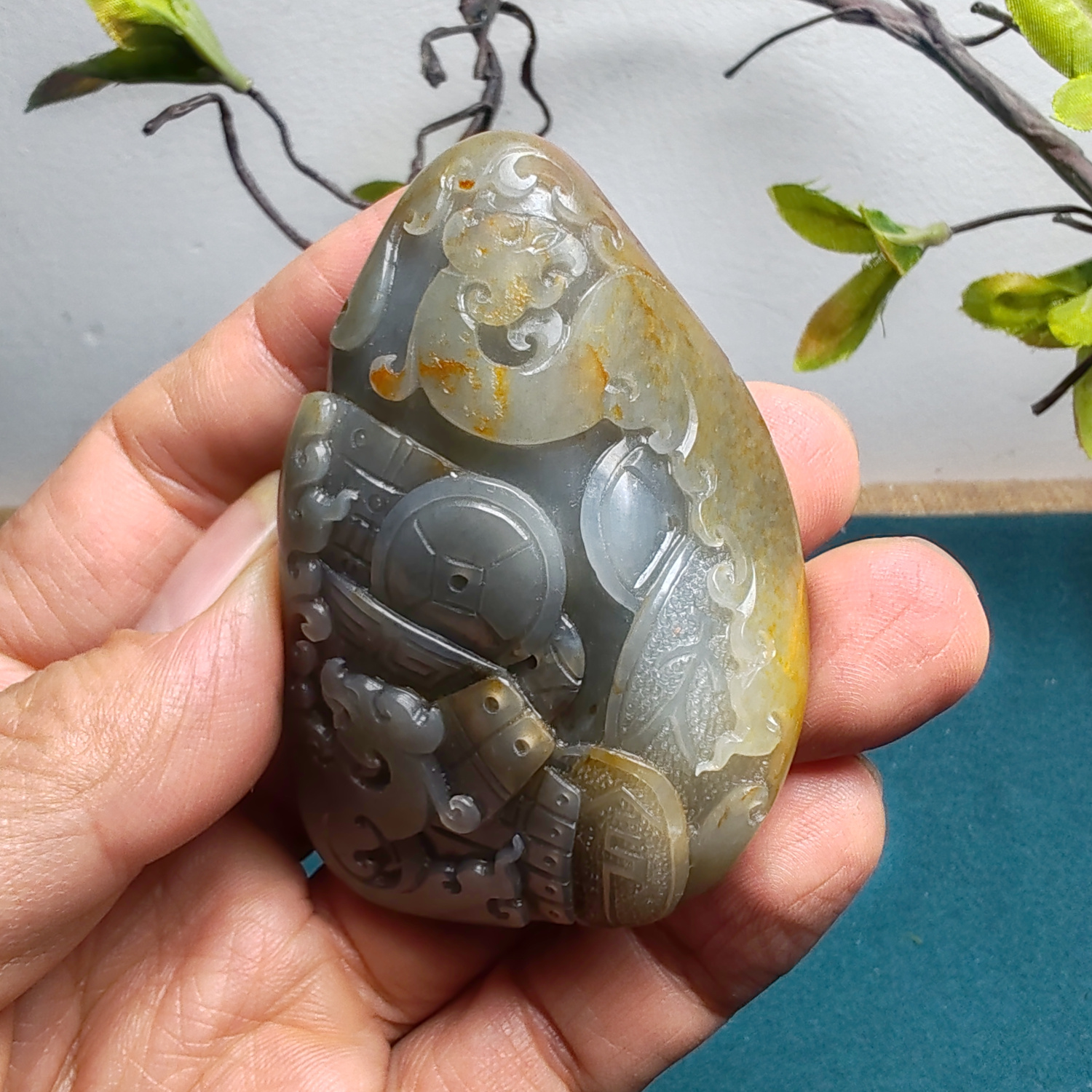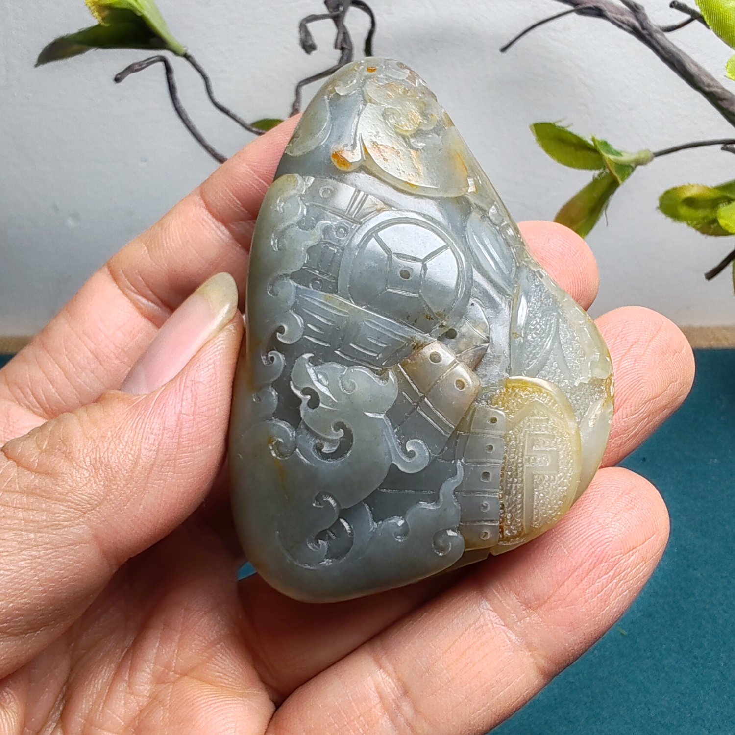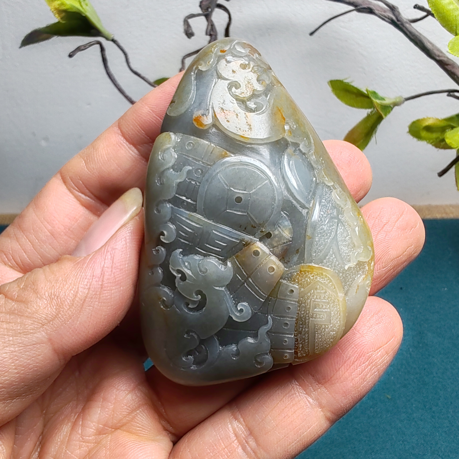 新疆和田玉籽玉青花墨玉仿古龙凤锦灰堆手把件男女国风龙凤呈祥