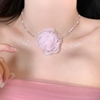 清新甜美感网纱玫瑰花项链女小众多巴胺串珠锁骨链choker颈链配饰