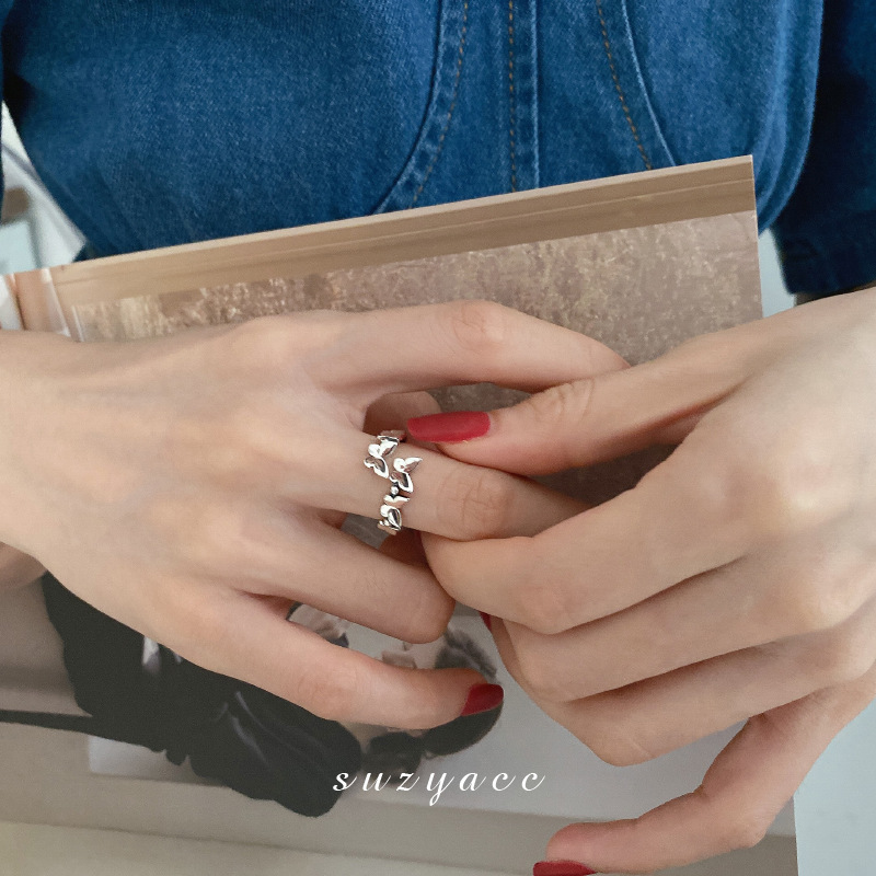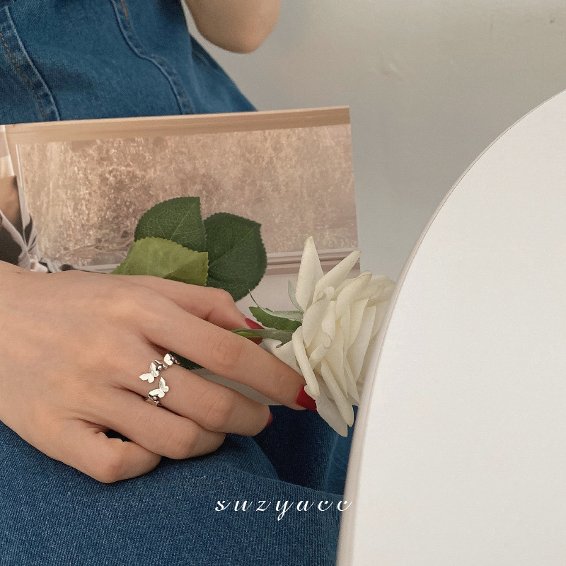 韩国蝴蝶做旧开口戒指女S925纯银时尚个性简约ins潮食指戒网红