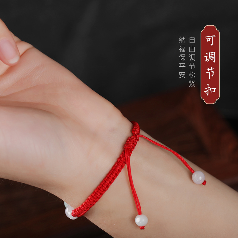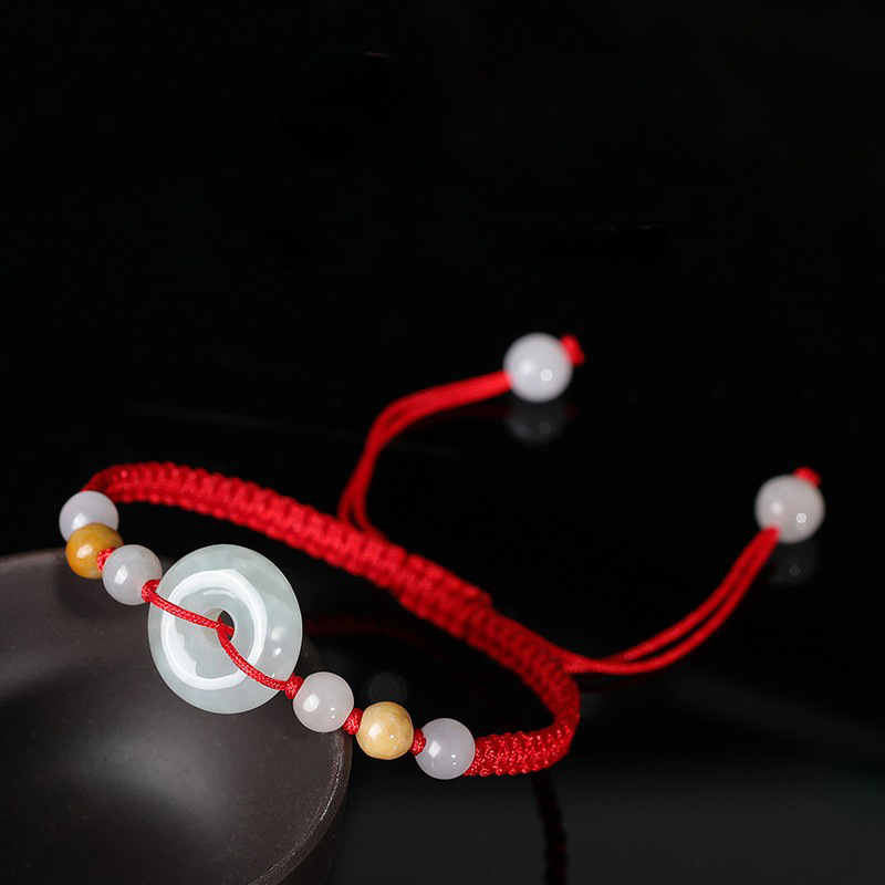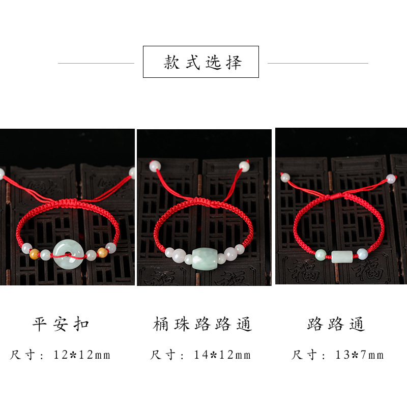 手工编织平安扣女桶珠路路通手串男守护正品简约翡翠红绳手链